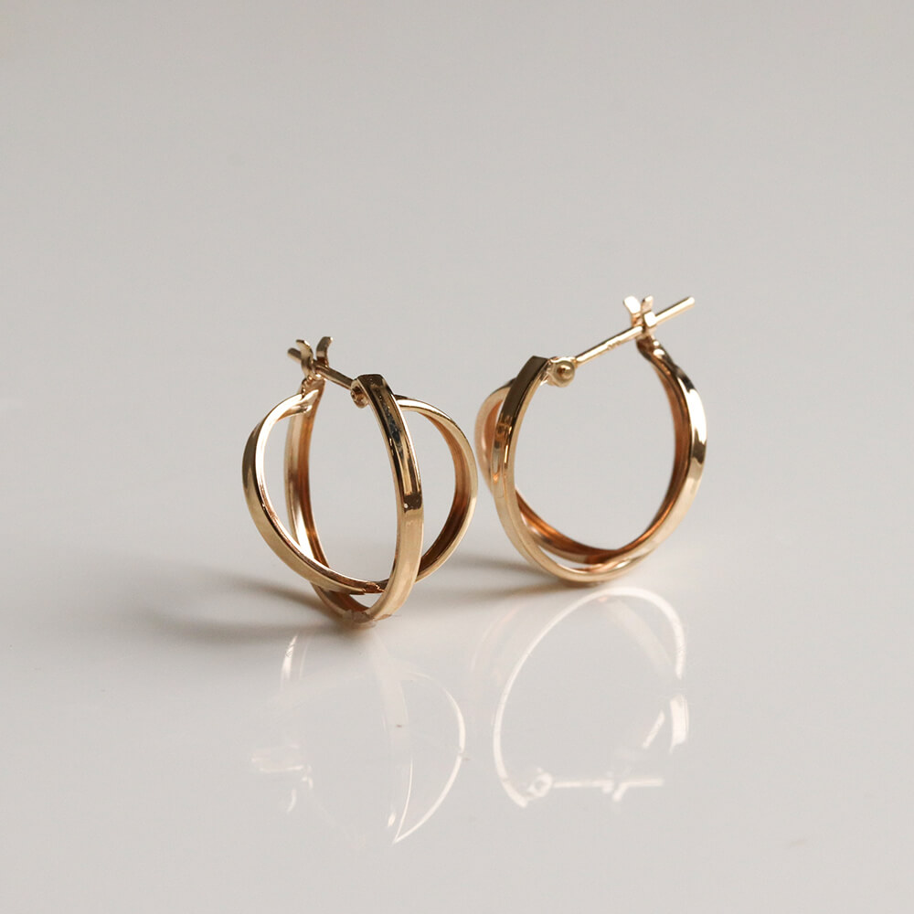 ゴールド ダブル スナップ フープ ピアス | K10YG