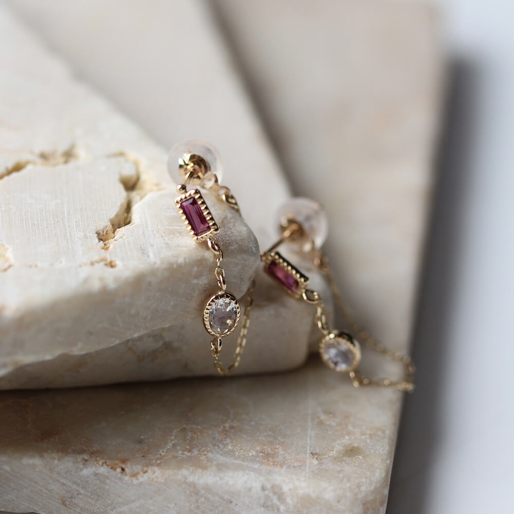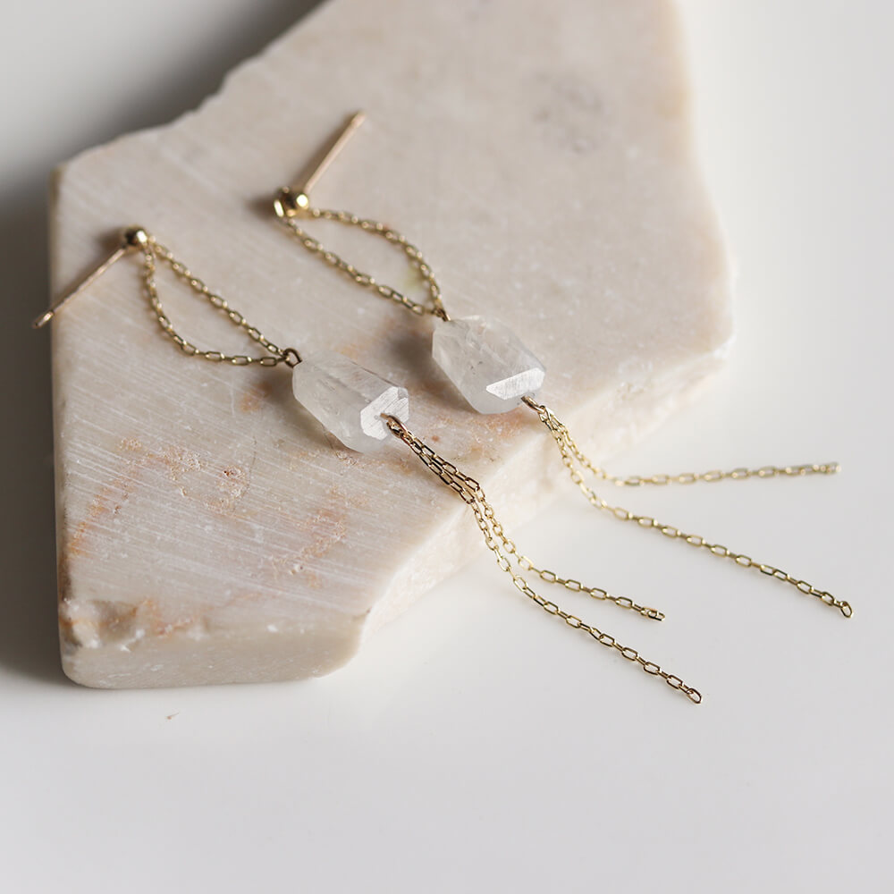 レインボームーンストーン チェーン ピアス | K10YG 〈2025 AUTUMN COLLECTION〉