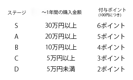 ※SALE商品、割引対象商品についてはランク関係なく一律100円で2P付与(発送後)