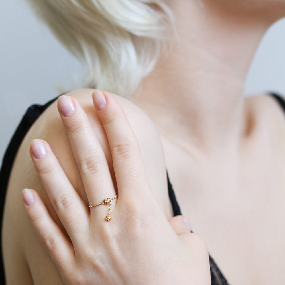揺れ感が可愛いぷっくりしたハートのチェーンリング。