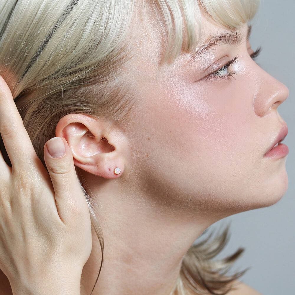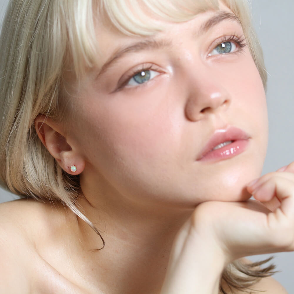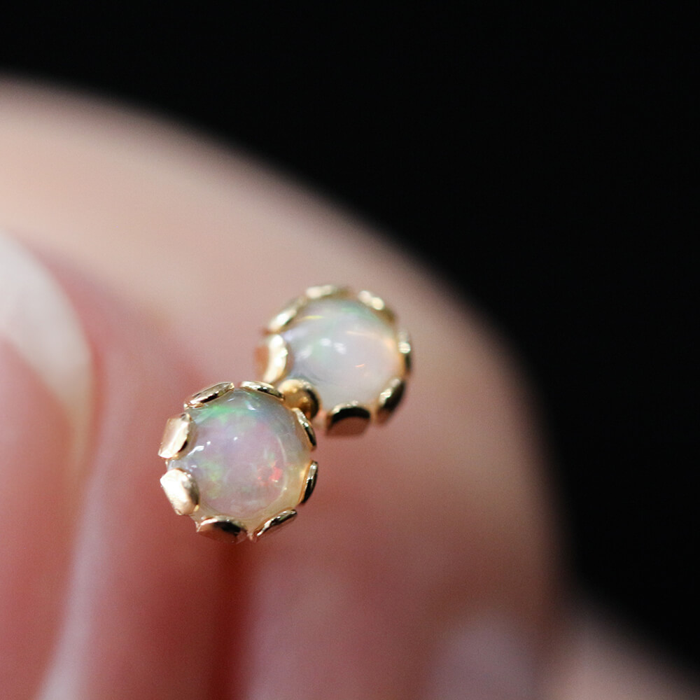 虹色に光る神秘的なオパールピアス。