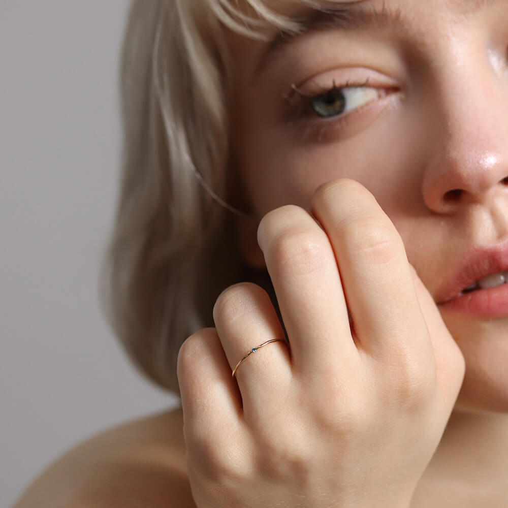 引っ掛かりがないようにセットされたブルーダイヤモンドで、より軽やかな印象に。