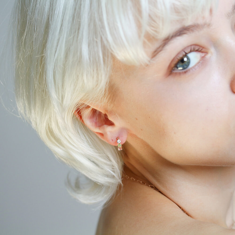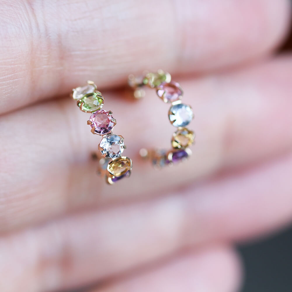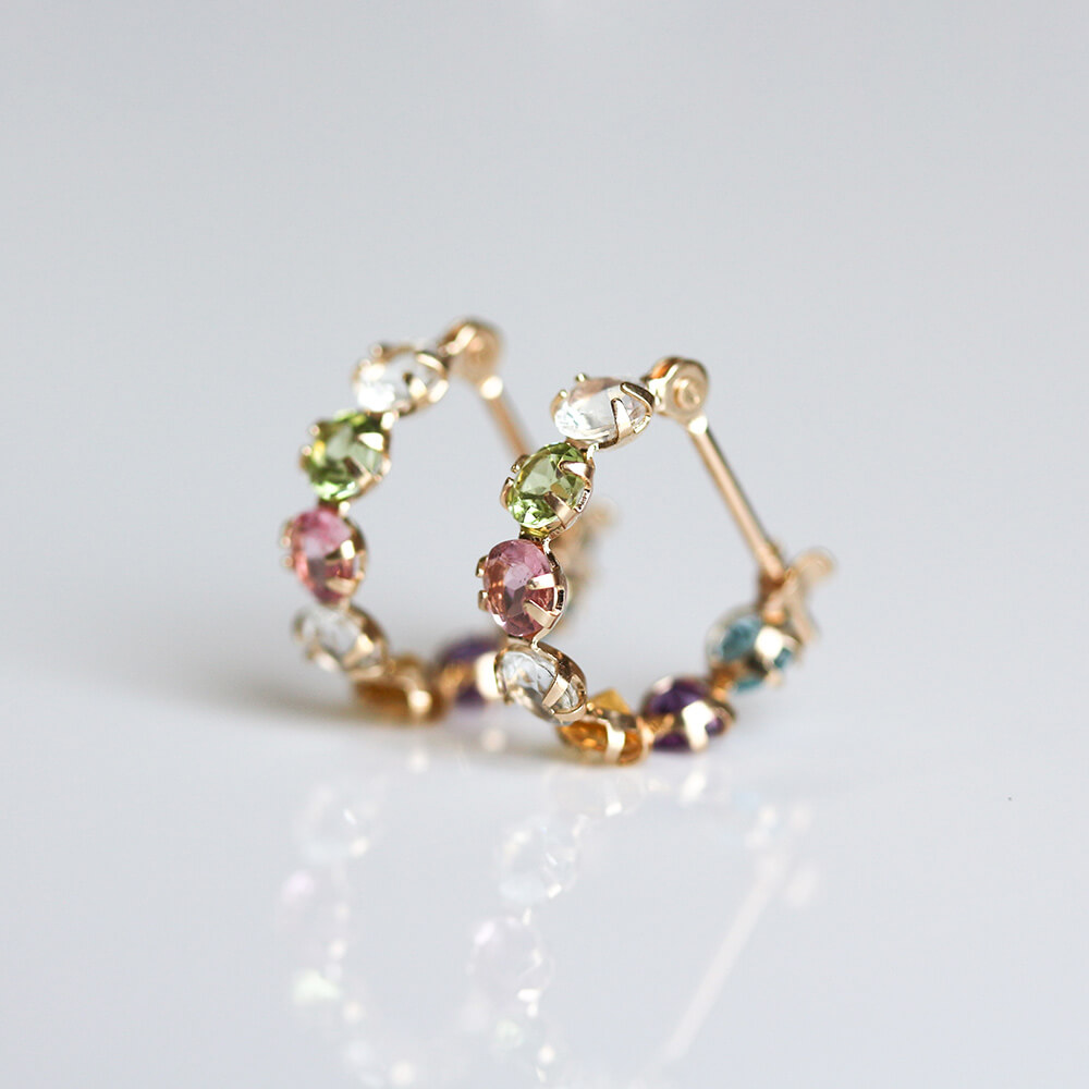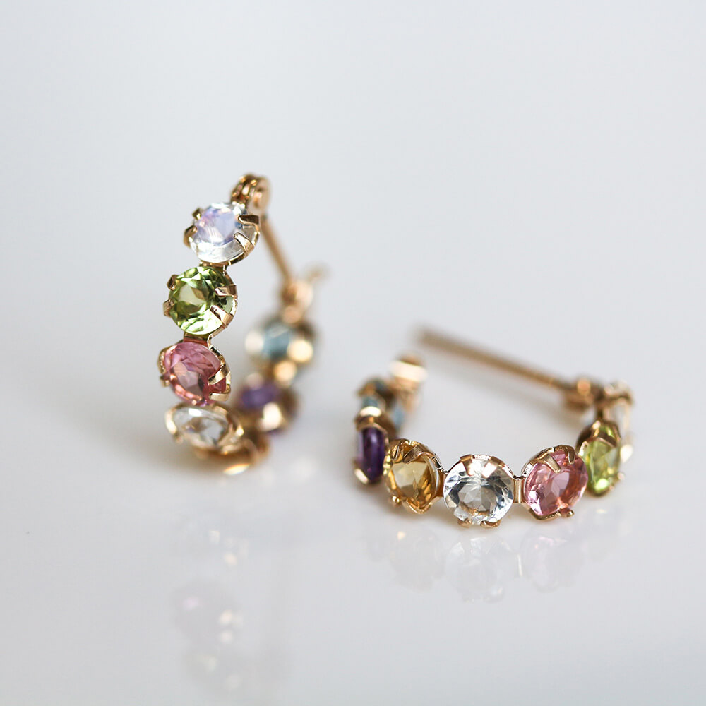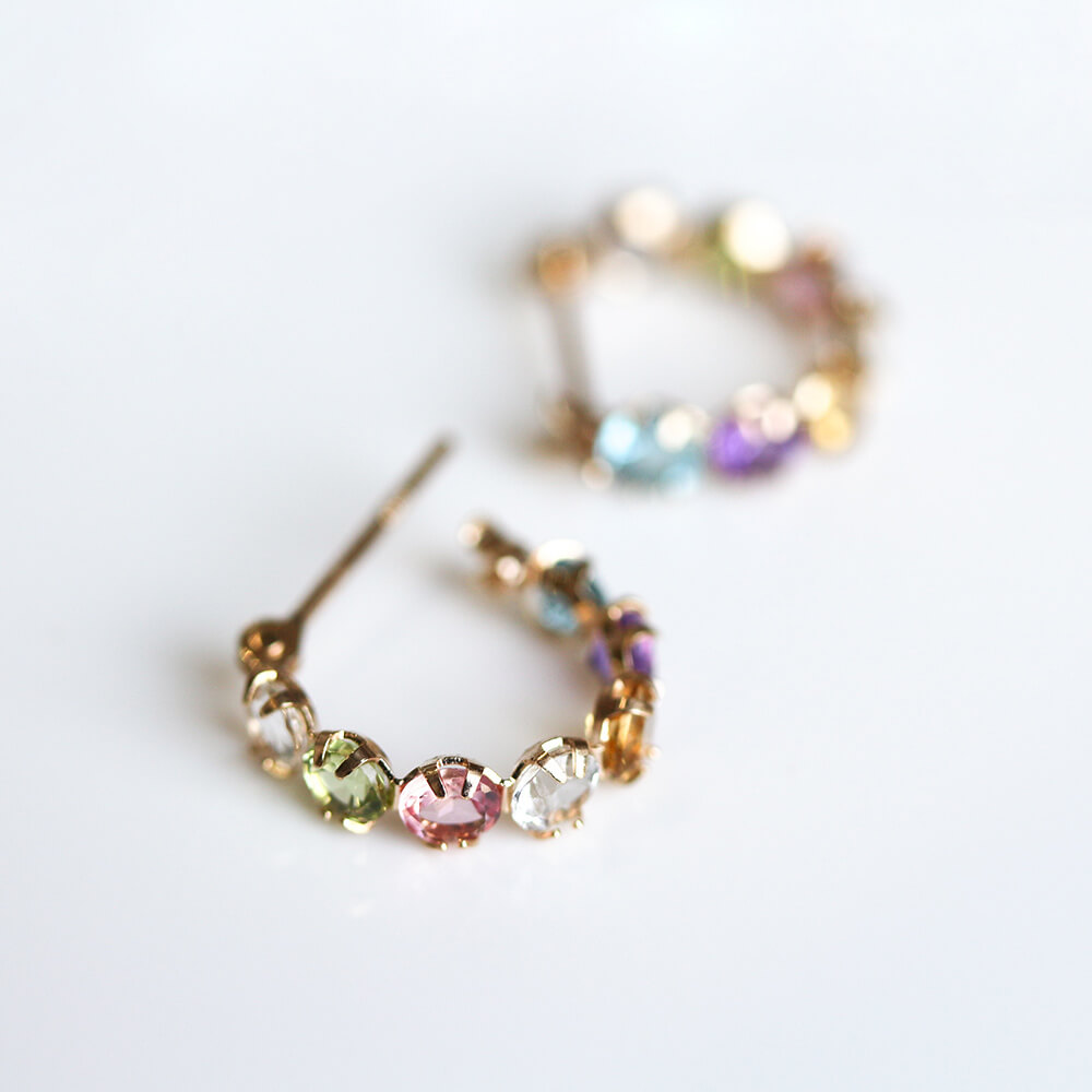 淡い色味が素敵なカラーストーンを7石あしらったフープスナップピアス。