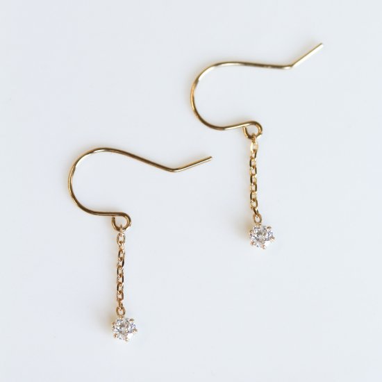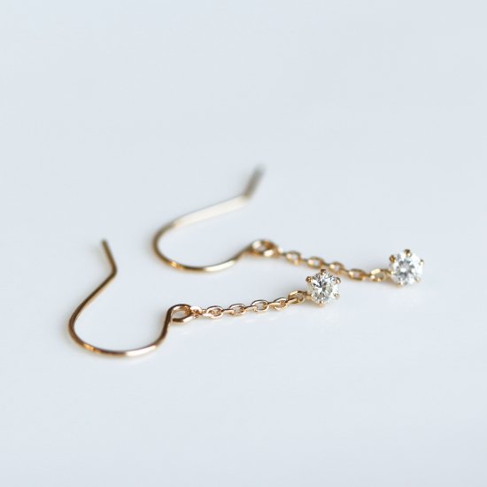 チェーンの先に一石のダイヤモンドが光るフックピアス。