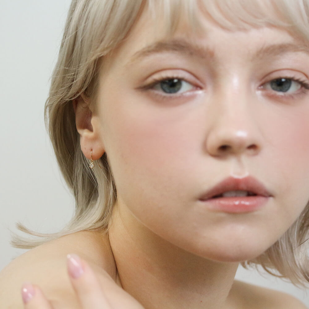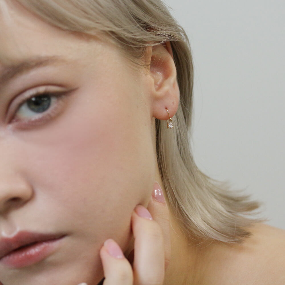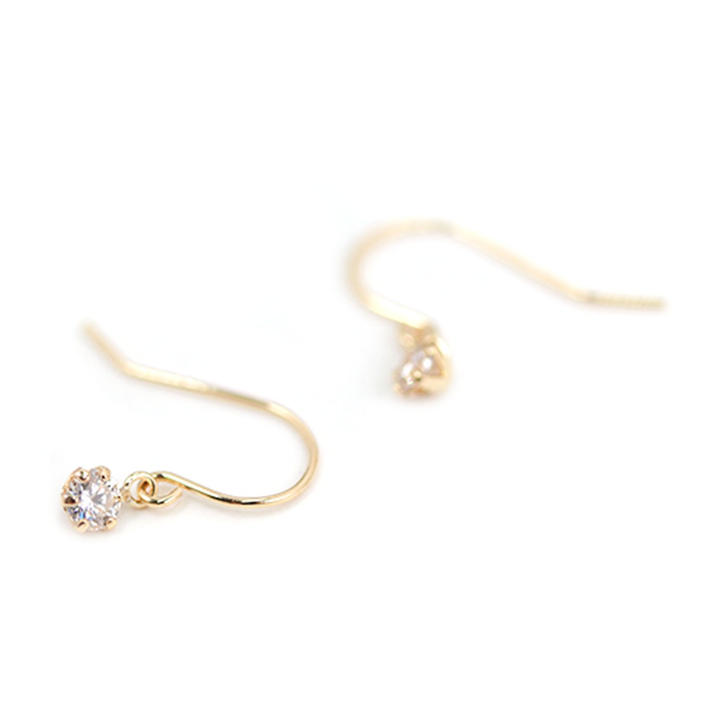 直径3ミリのダイヤモンドが小さく揺れるフックピアス。