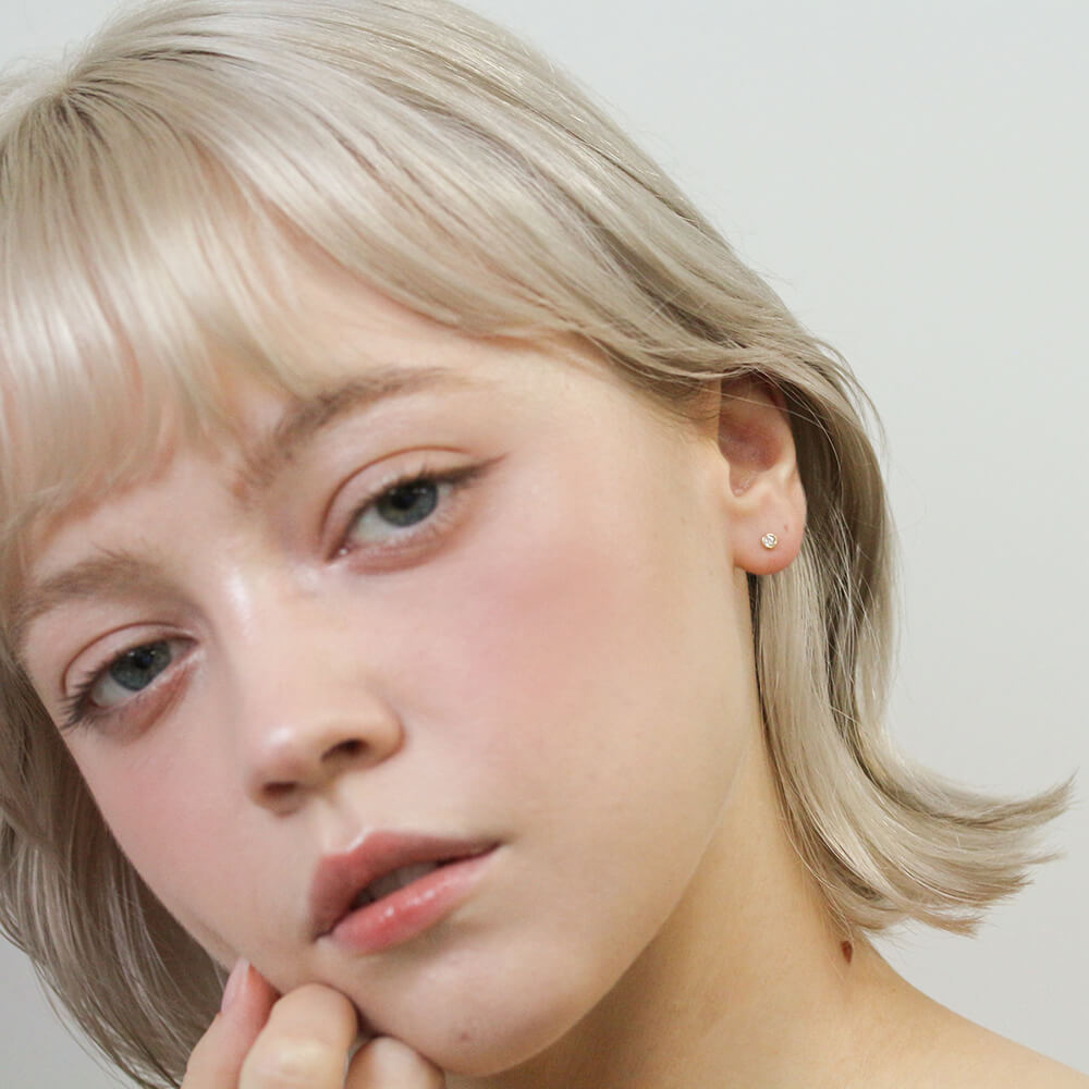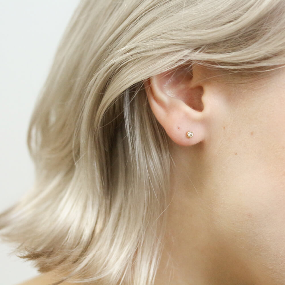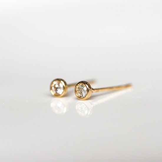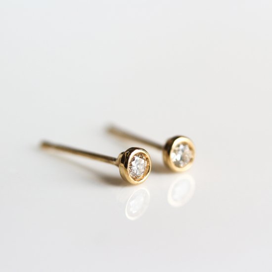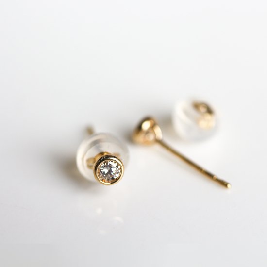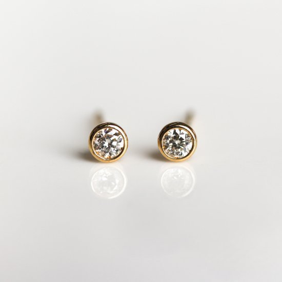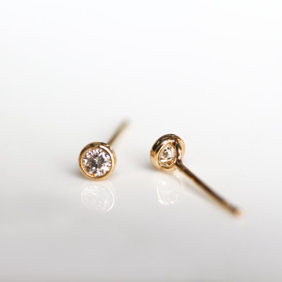 ダイヤモンドを引き立たせる覆輪留めの一粒ピアス。