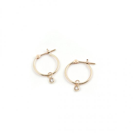 華奢なフープにダイヤモンドのチャームを通したシンプルかつモダンなピアス。