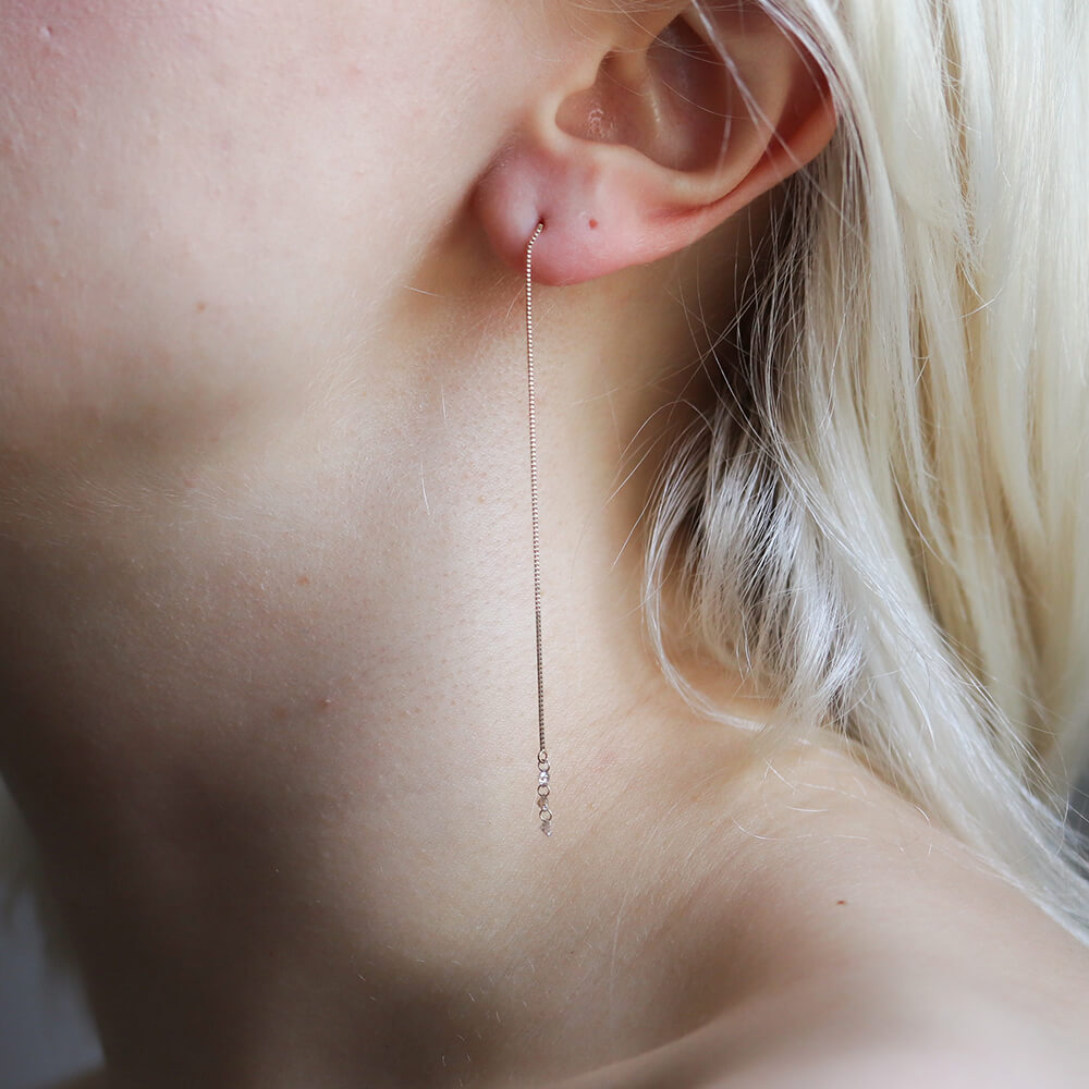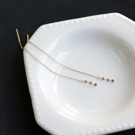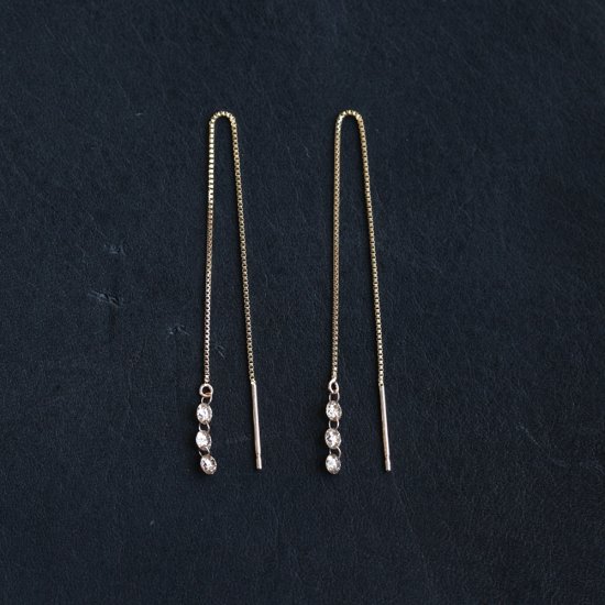 爪のないヌーディーダイヤモンドが3つ連なったロングピアス。