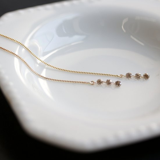 シャンパンダイヤモンド 0.3ct ロング ピアス | K10YG 〈ヌーディー〉