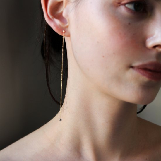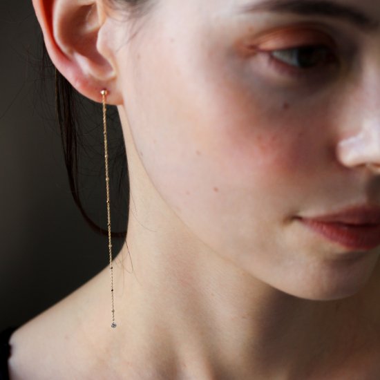 シャンパンダイヤモンド 0.1ct チェーン ピアス | K10YG 〈ヌーディー〉
