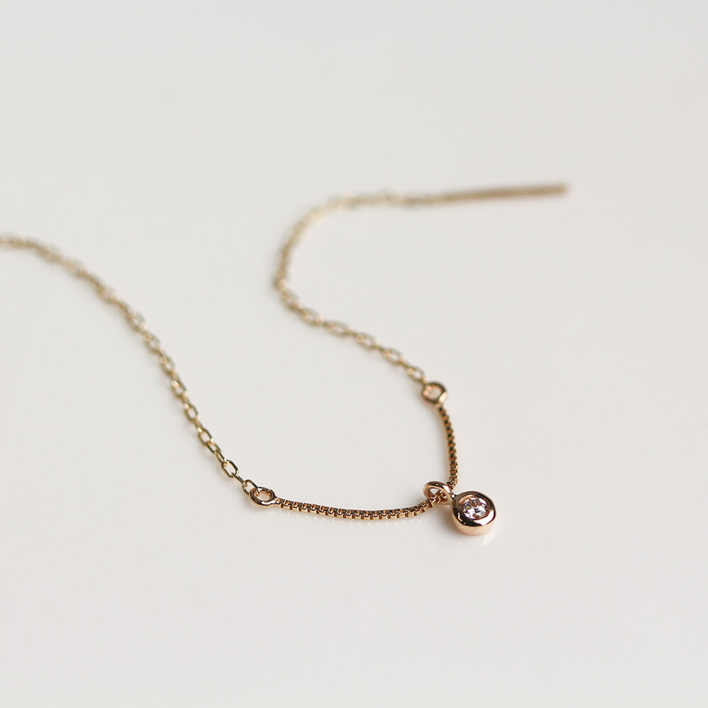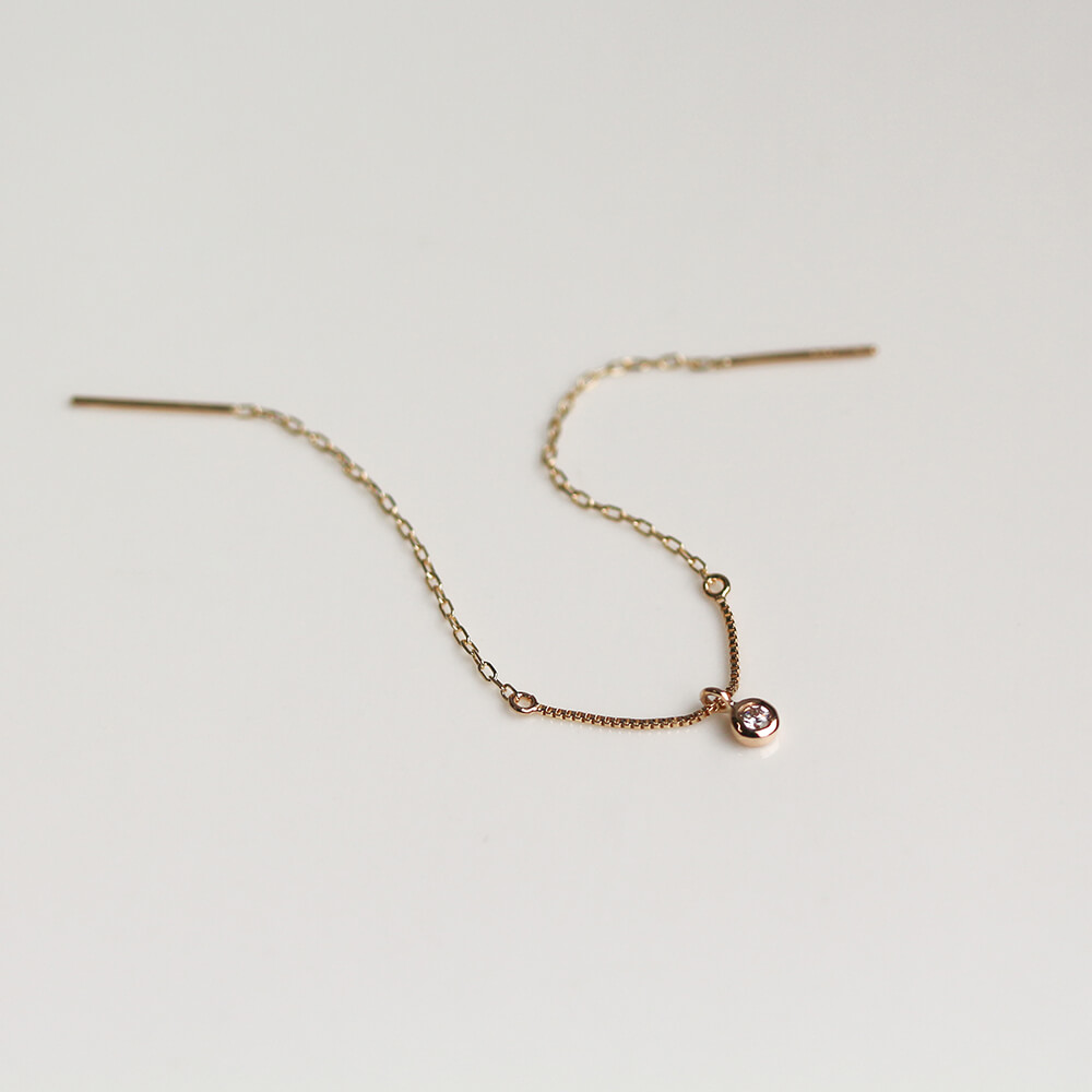 一粒ダイヤモンドが輝くスレンダーピアス。
