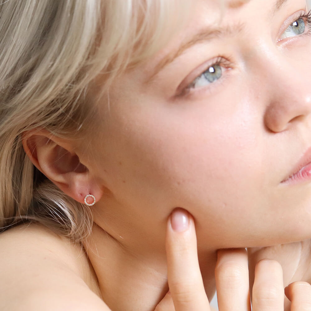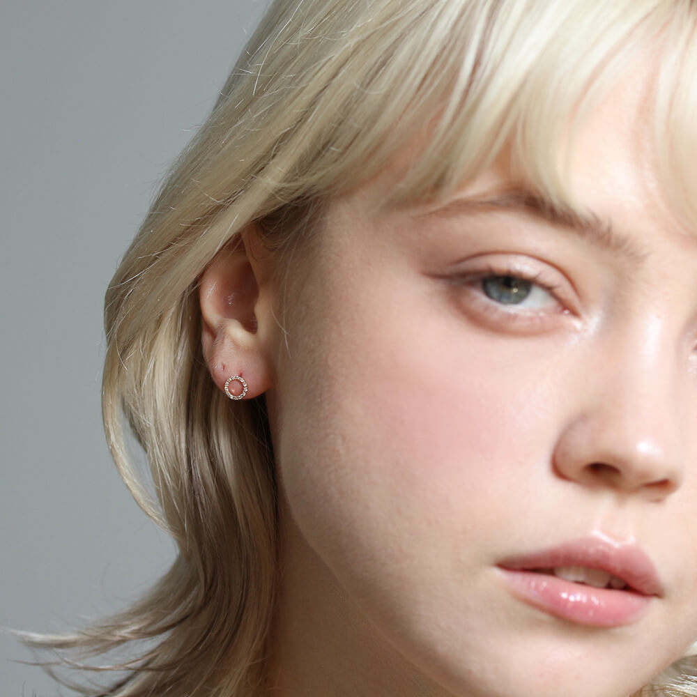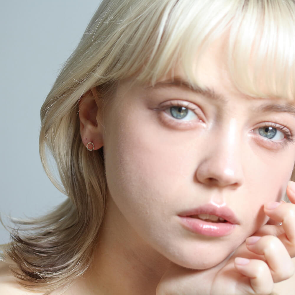 世界最小カットのダイヤモンドを使用した、ラウンドモチーフピアス。