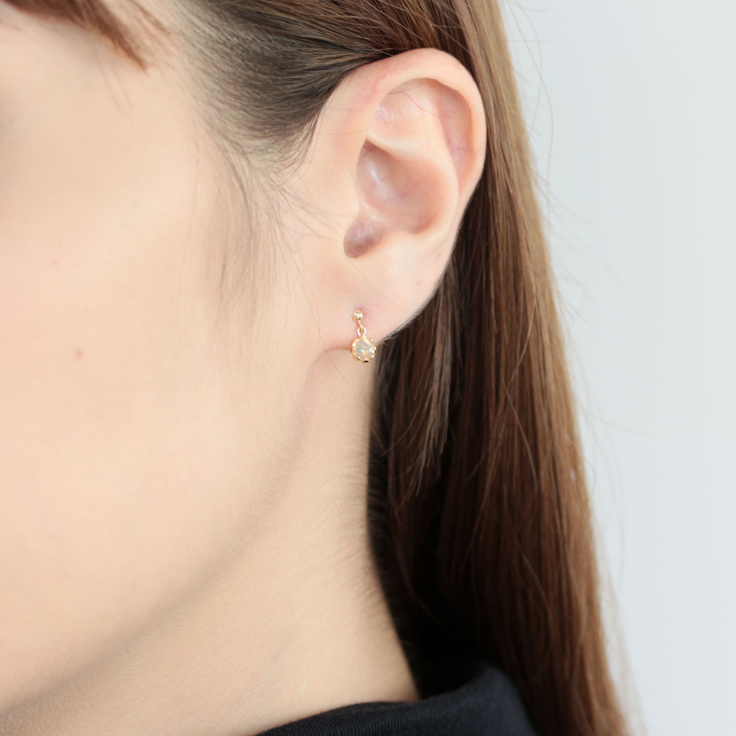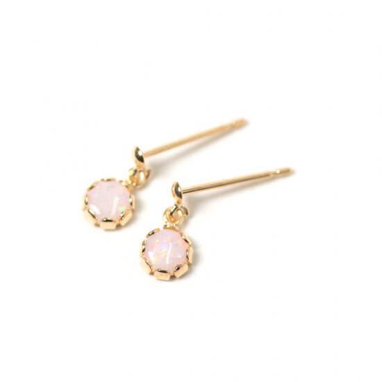 小粒のカボションオパールが耳元で小さく揺れる姿が女性らしいデザインです。