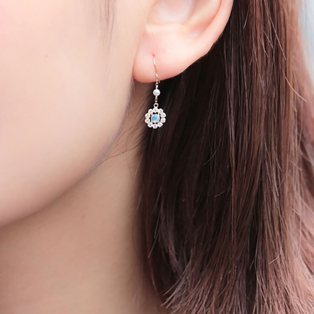 オパールの周りに華やかなキュービックジルコニアを配したフラワーデザイン。