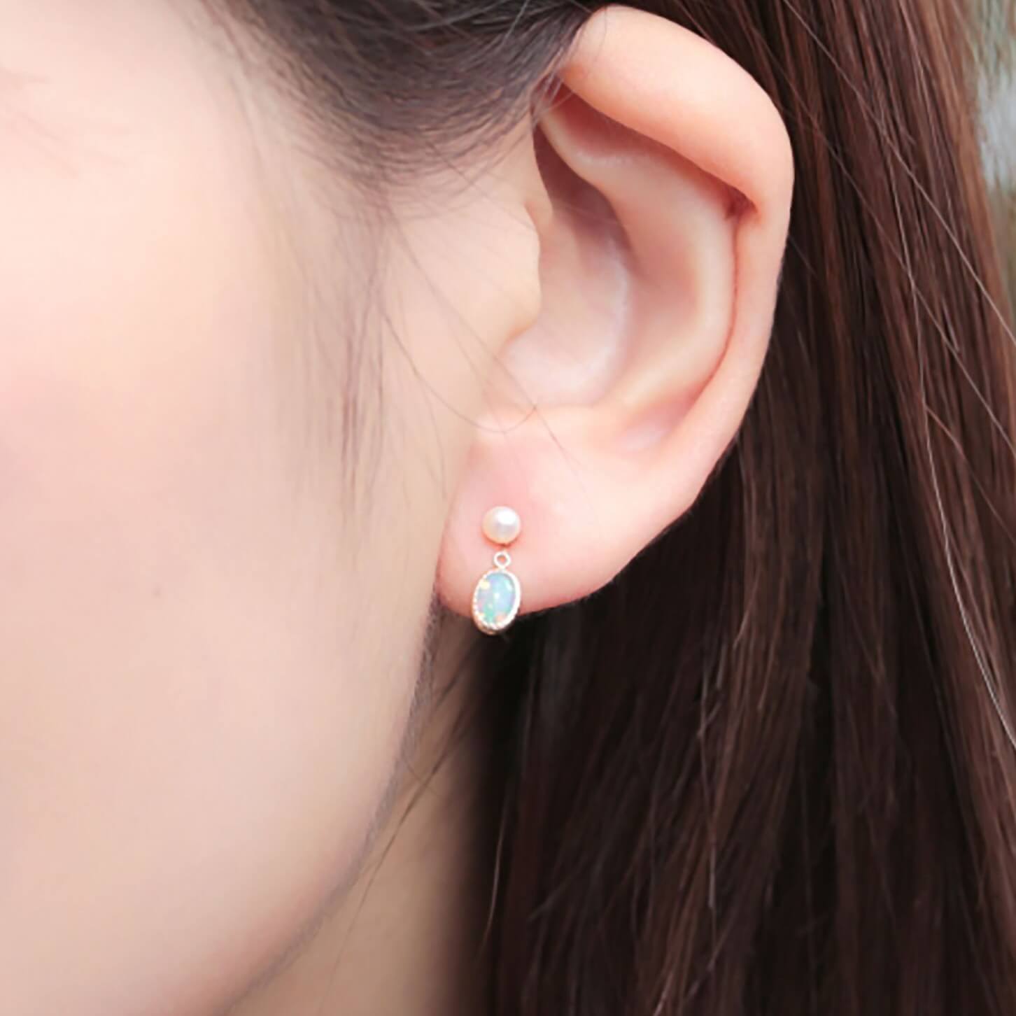 オパールのチャームを取り外して一粒淡水パールスタッドピアスとしてもお使いいただけるデザイン。