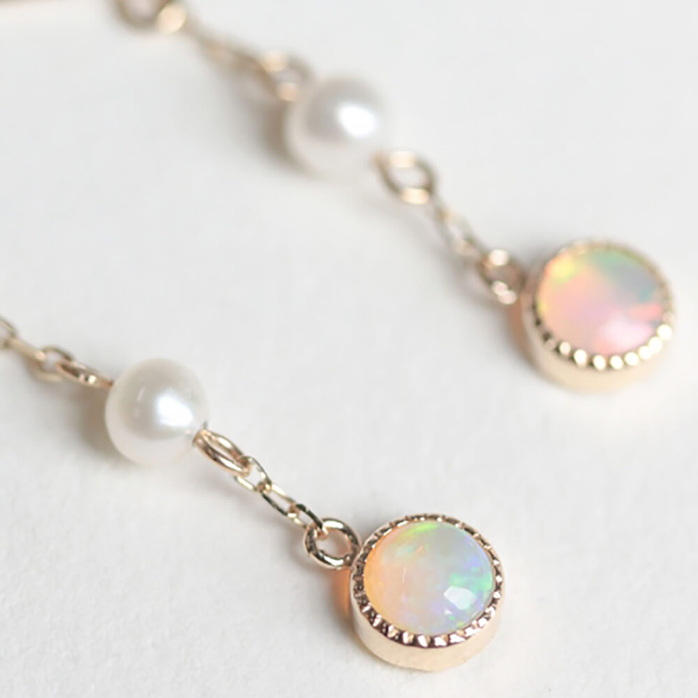 人気の高い淡水パールとオパールが連なった華奢で大人可愛いデザイン。