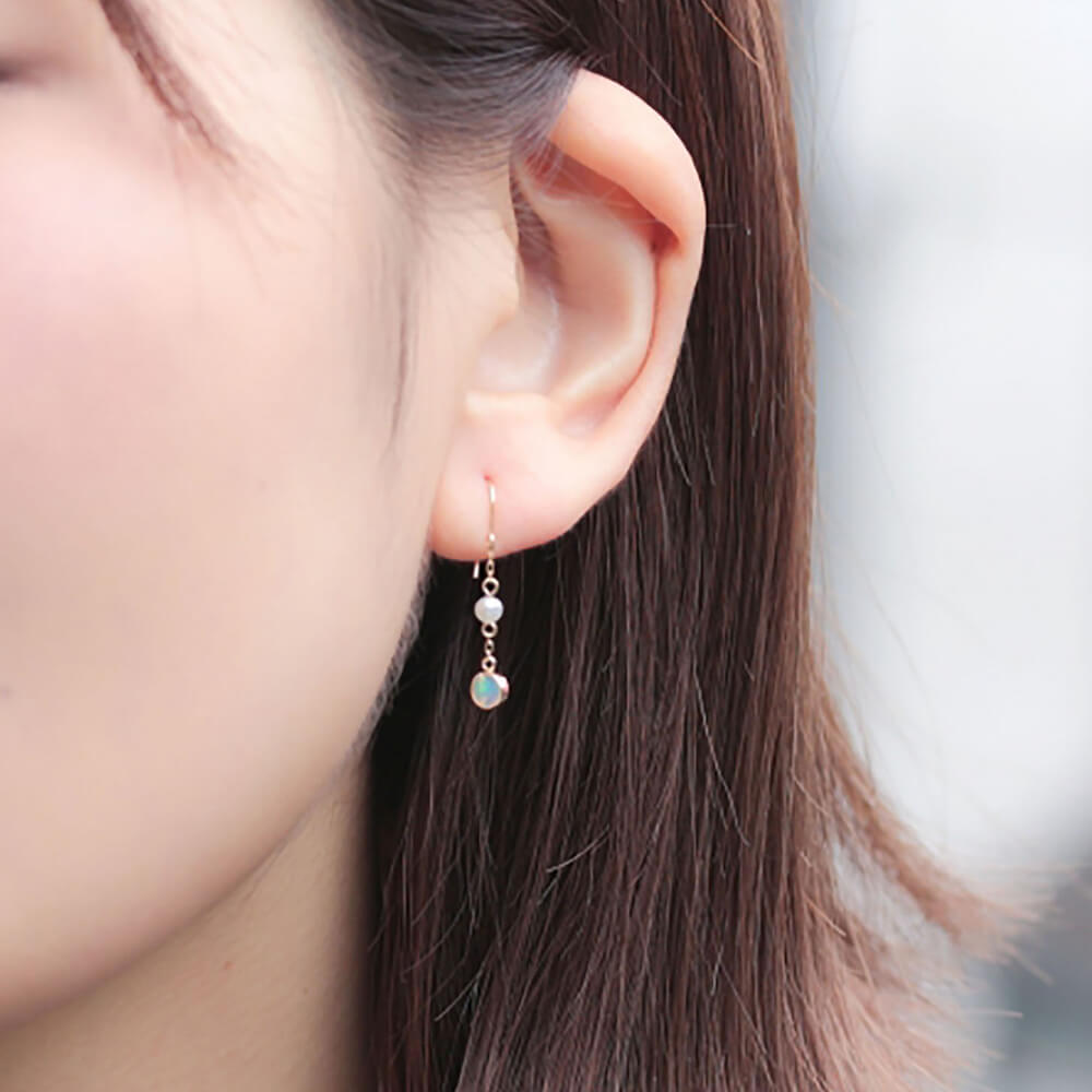 淡水パールとオパールをチェーンにあしらったフックピアス。