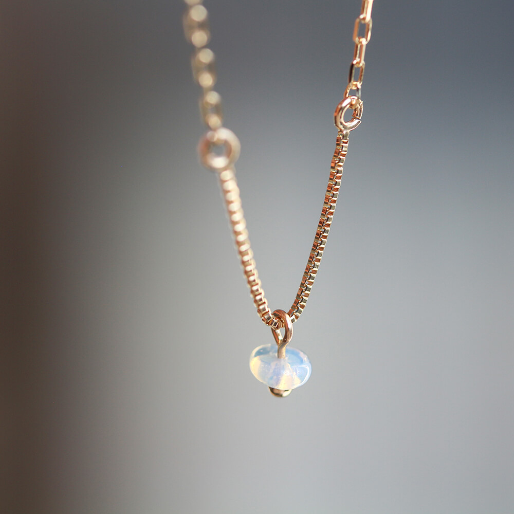 乳白色の石を覗くと、ゆらゆらと虹色の表情を見せる「オパール」