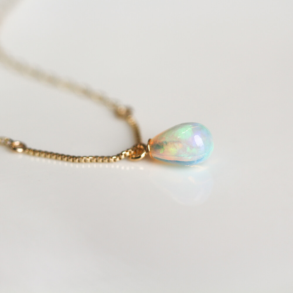 ゆらめきでより鮮やかな色合いを見せるオパールは、身につけることで優しく華やかな印象に。