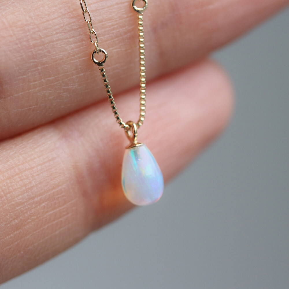 乳白色の石を覗くと、ゆらゆらと虹色の表情を見せる「オパール」