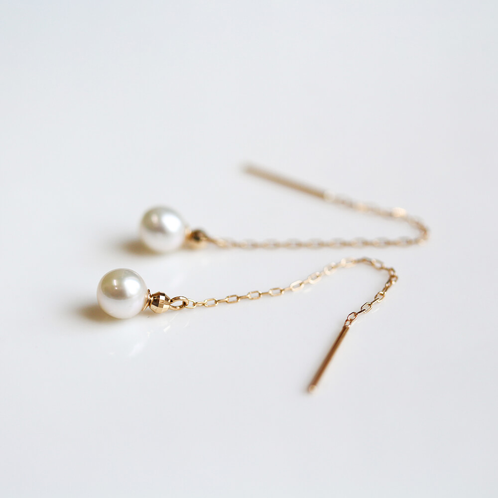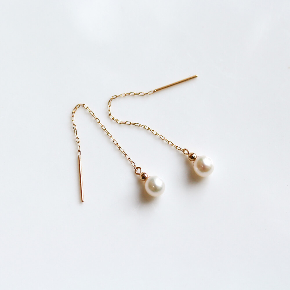 パール ロング ピアス | K18
