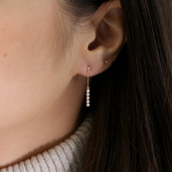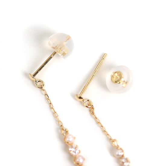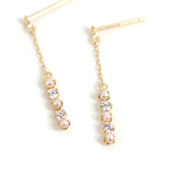 小さな揺れ感が可憐な印象を放つ、淡水パールとキュービックジルコニアのピアス。