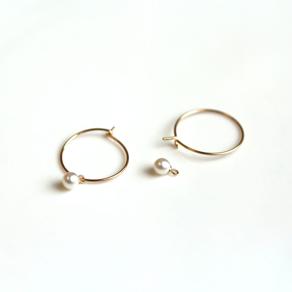 フープピアスに淡水パールを一粒通したシンプルなデザイン。
