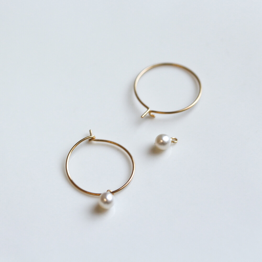 パール フープ ピアス | K18