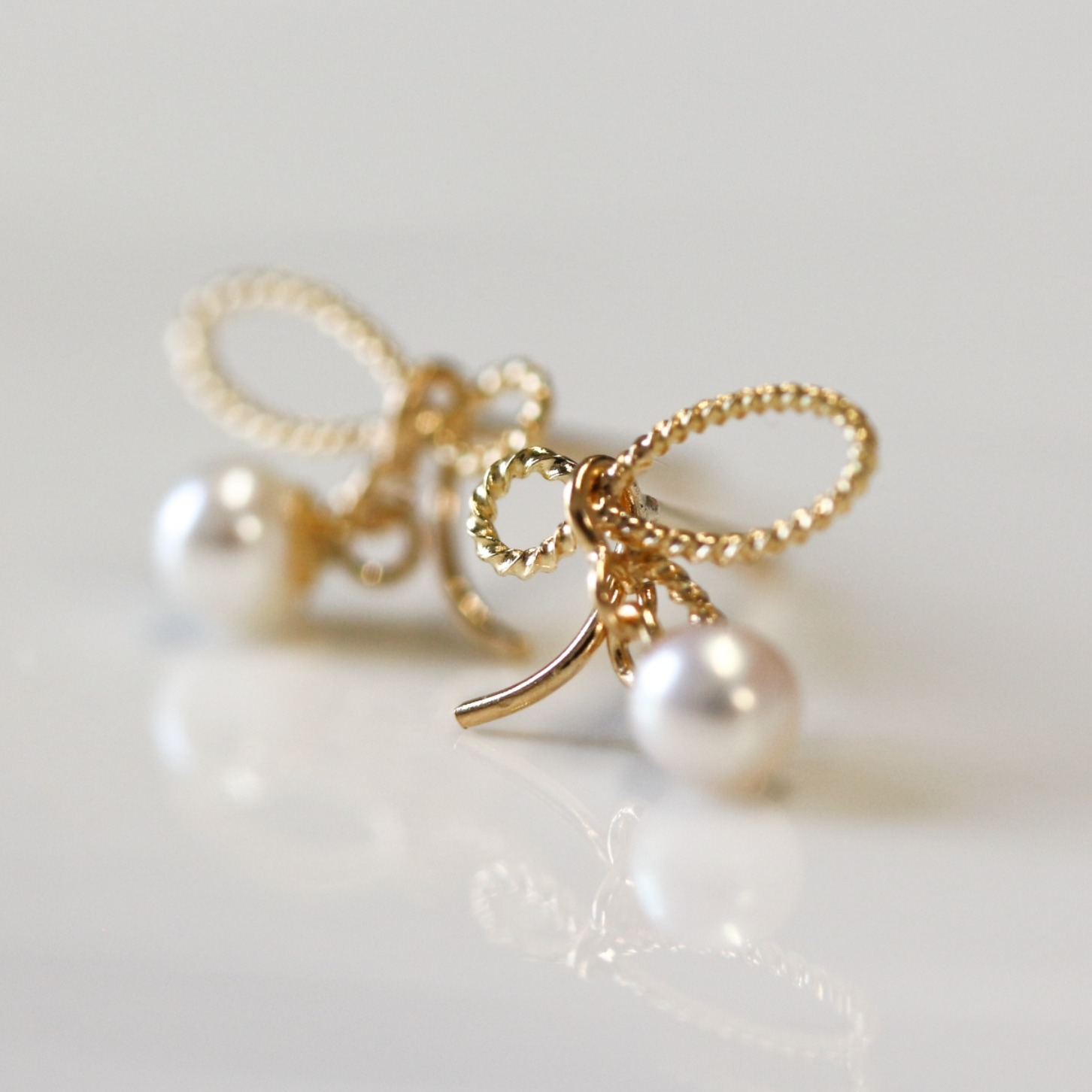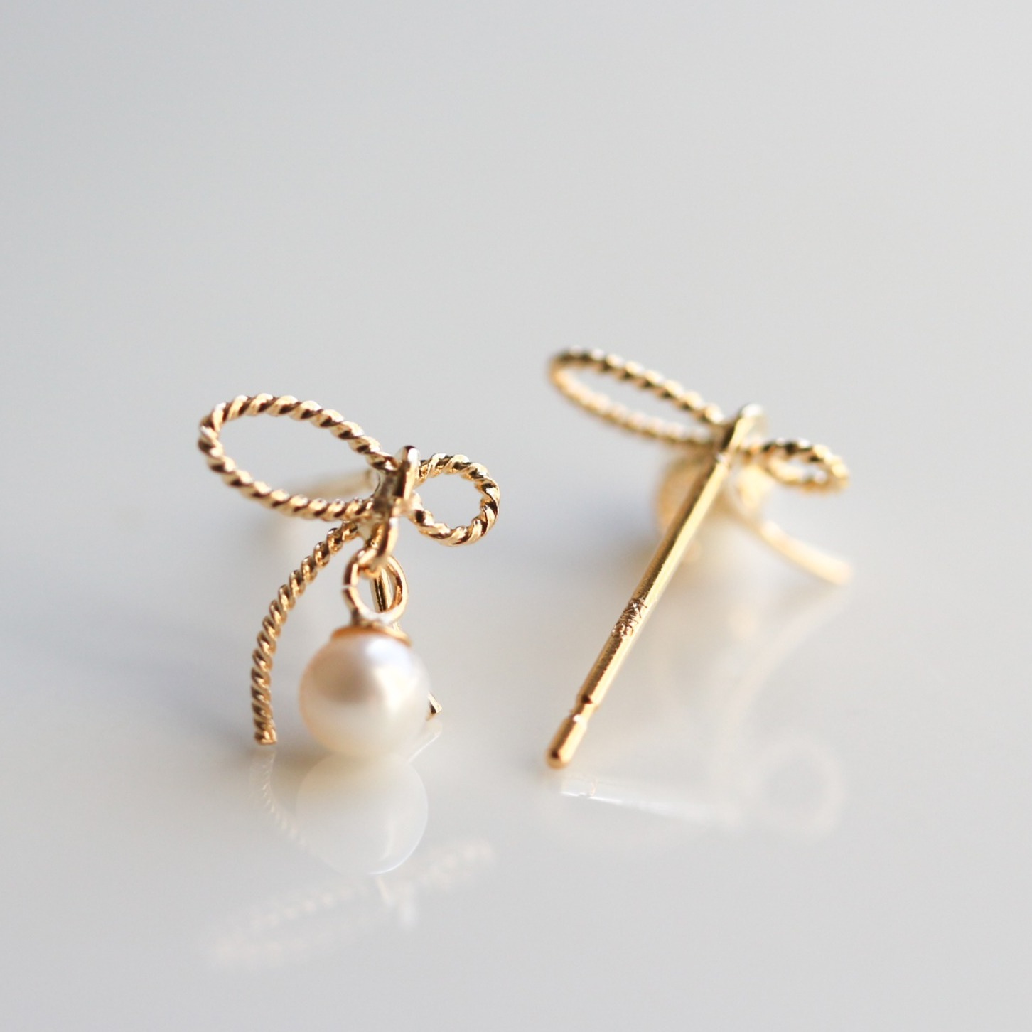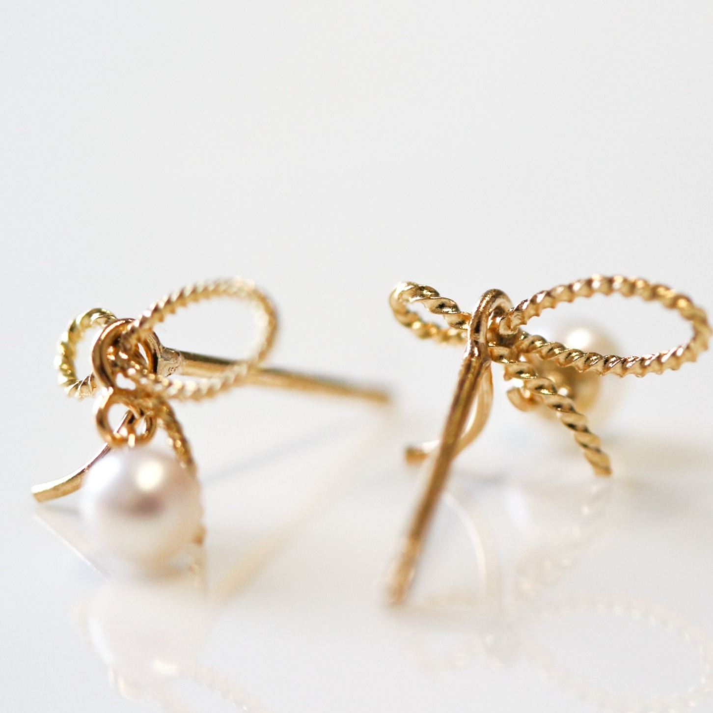 ワイヤーで作られた華奢なリボンモチーフのピアス。