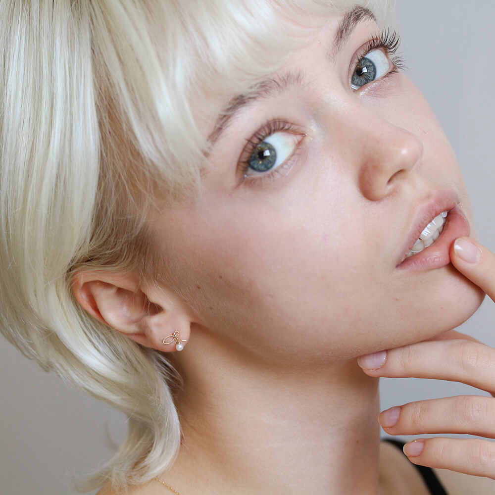 控えめなサイズと淡水パールの揺れ感が大人可愛いデザイン。