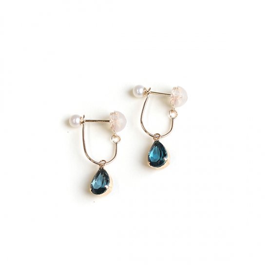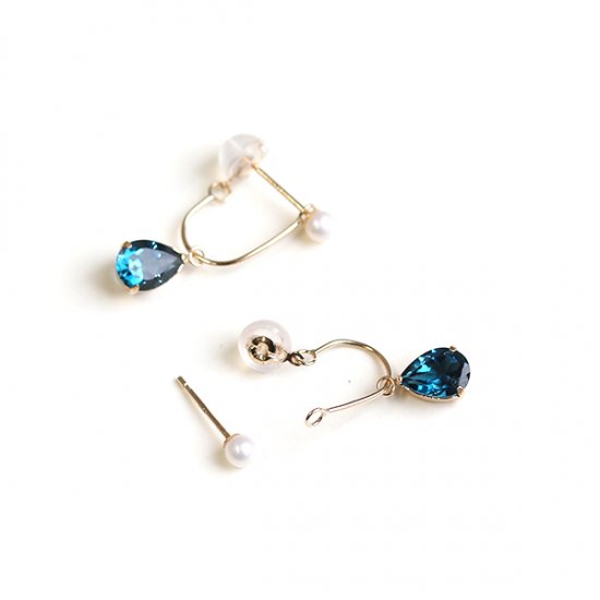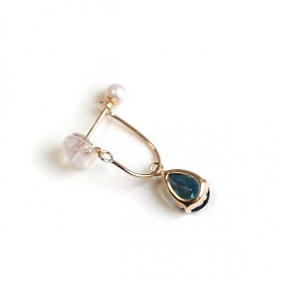 ロンドンブルートパーズ / パール チャーム ピアス | K10YG
