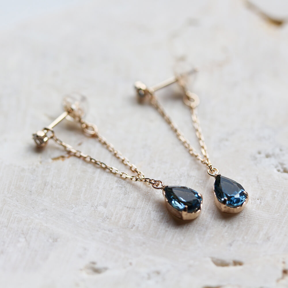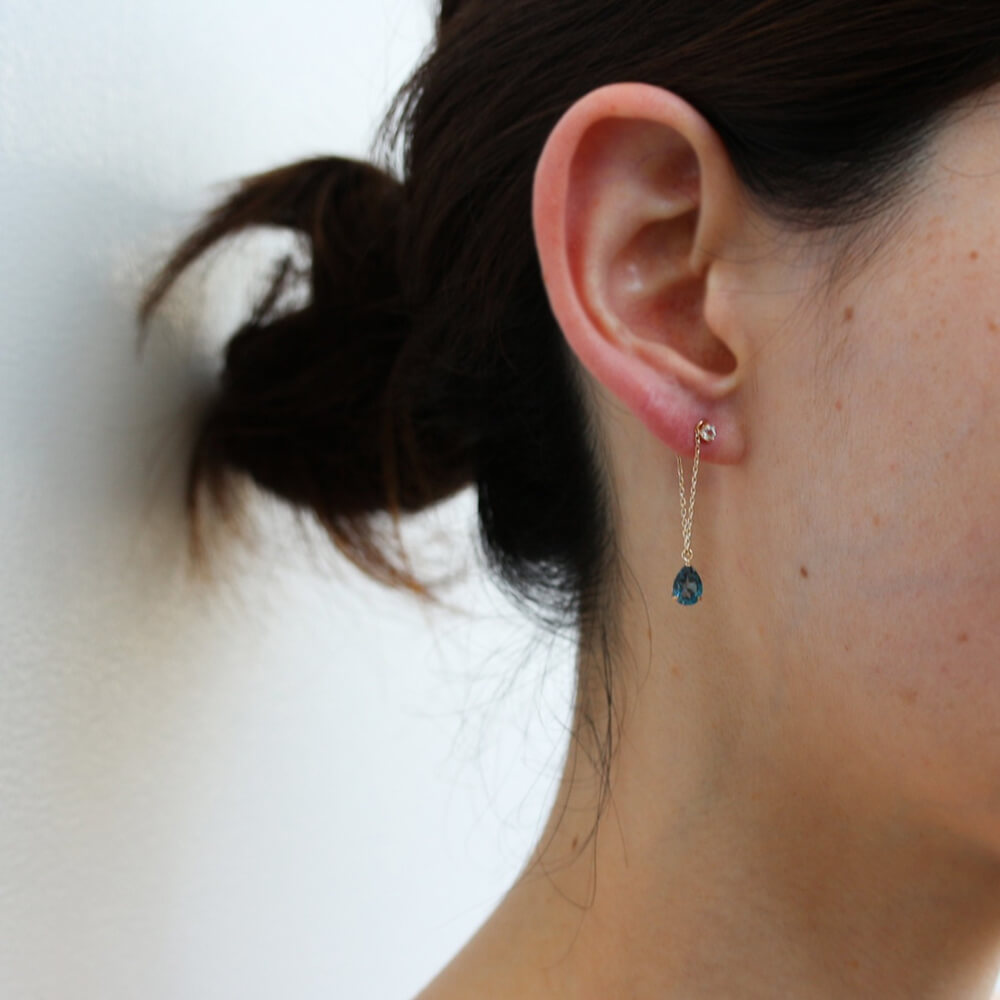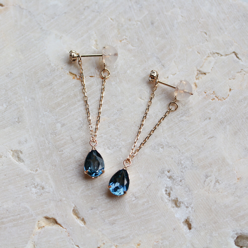 深い色合いが美しいロンドンブルートパーズをあしらったピアス。