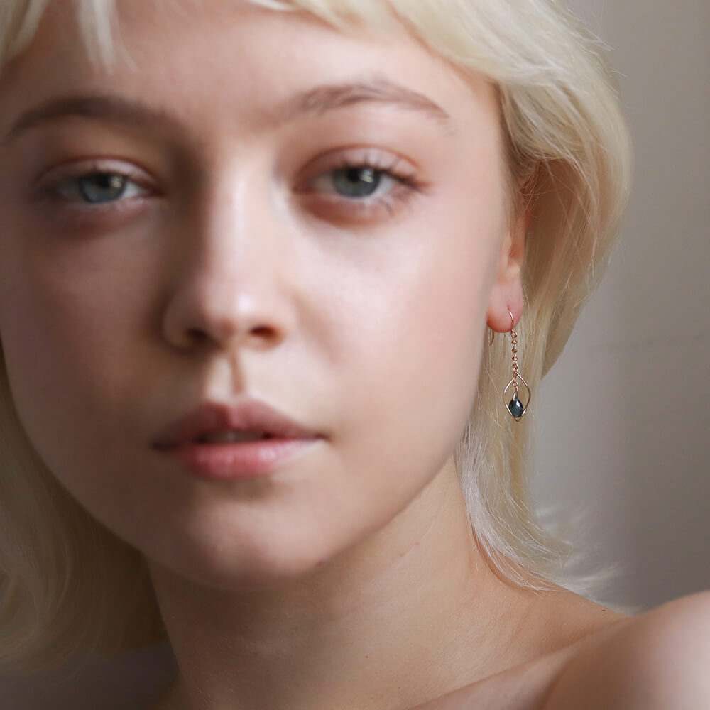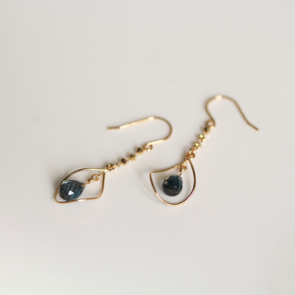 青色トパーズは濃淡の表情によってそれぞれ呼び名が変わり、淡い色味からスカイブルートパーズ、スイストパーズ、ロンドンブルートパーズと色味の深いものほど稀少価値が高いとされています。11月の誕生石でもある「ロンドンブルーとパーズ」は少しグレーがかった濃い青色とその複雑な色味が最大の魅力。cui-cuiではピアス、リング、ネックレスなど取り揃えております。