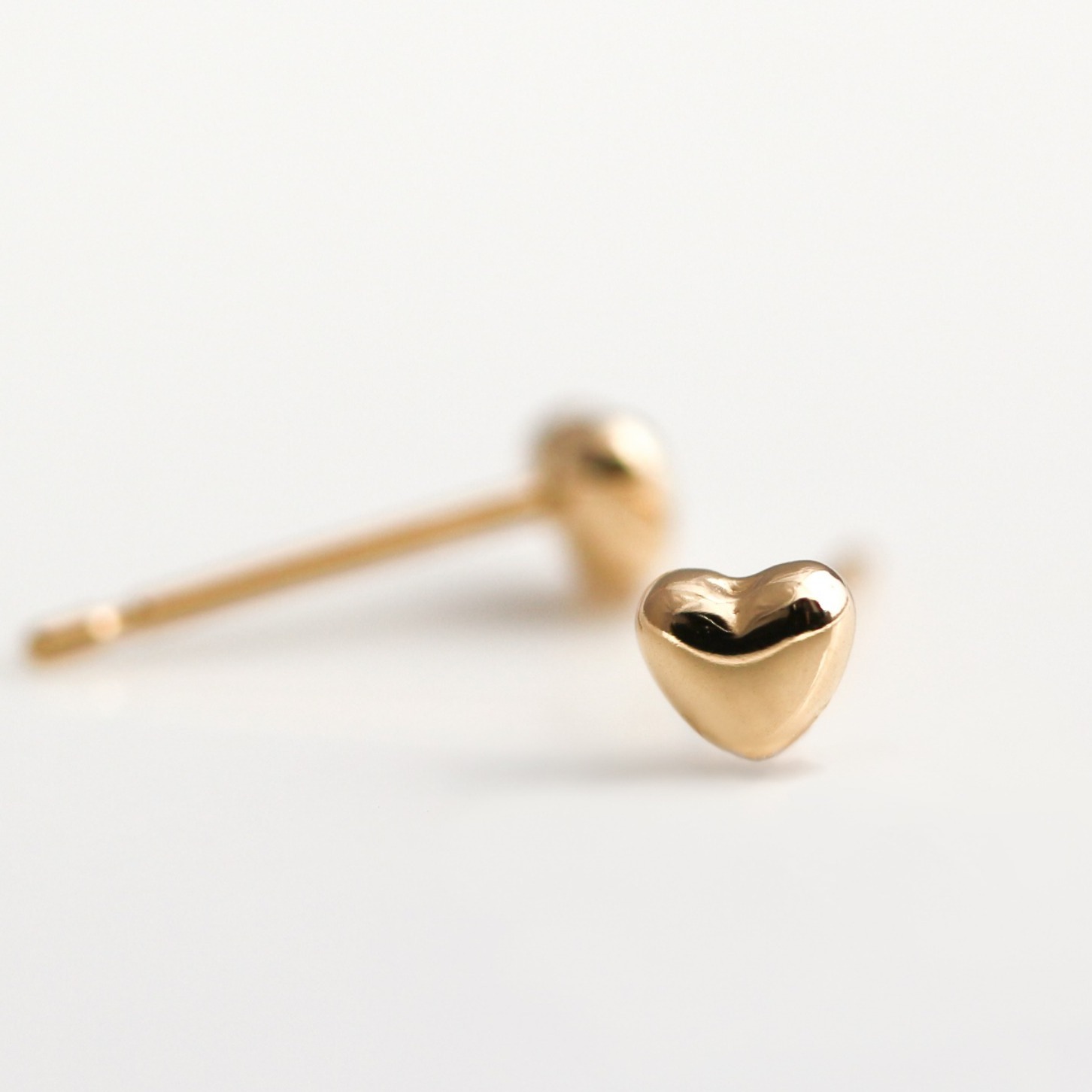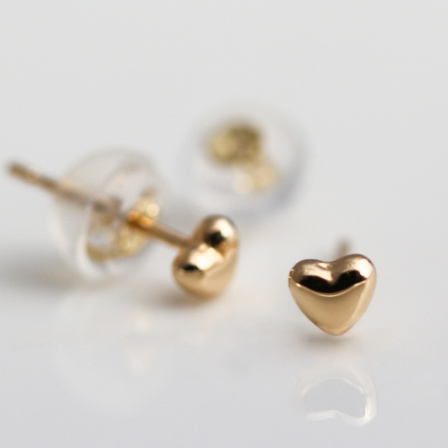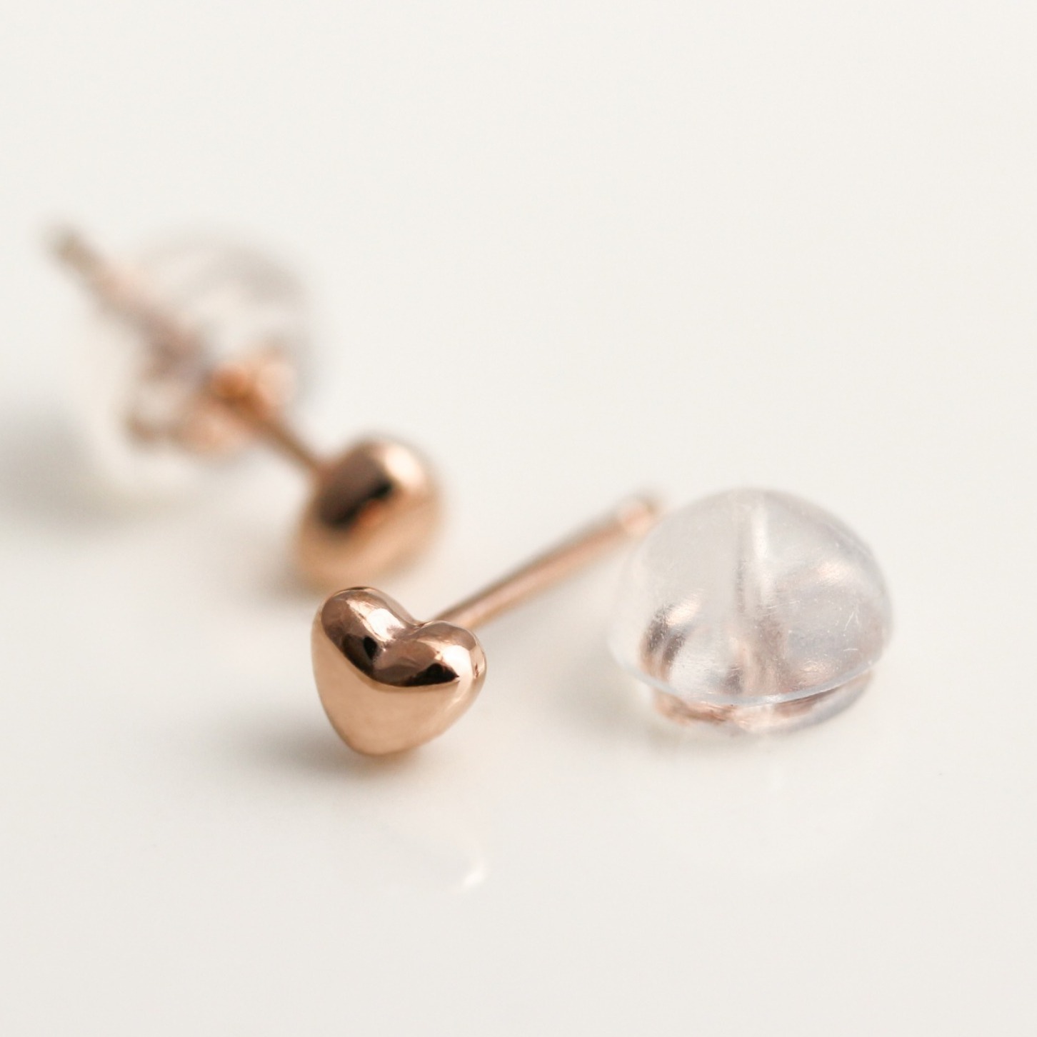 モチーフ、ポスト全て18金で作られた、お手頃なぷっくりハートのピアス。