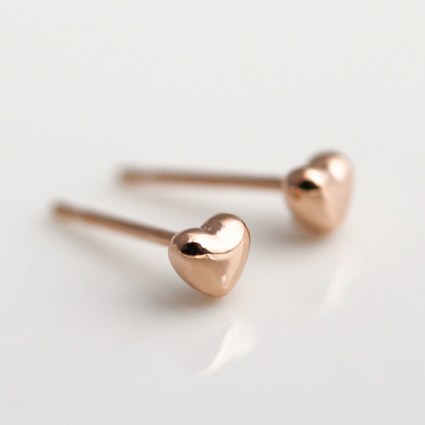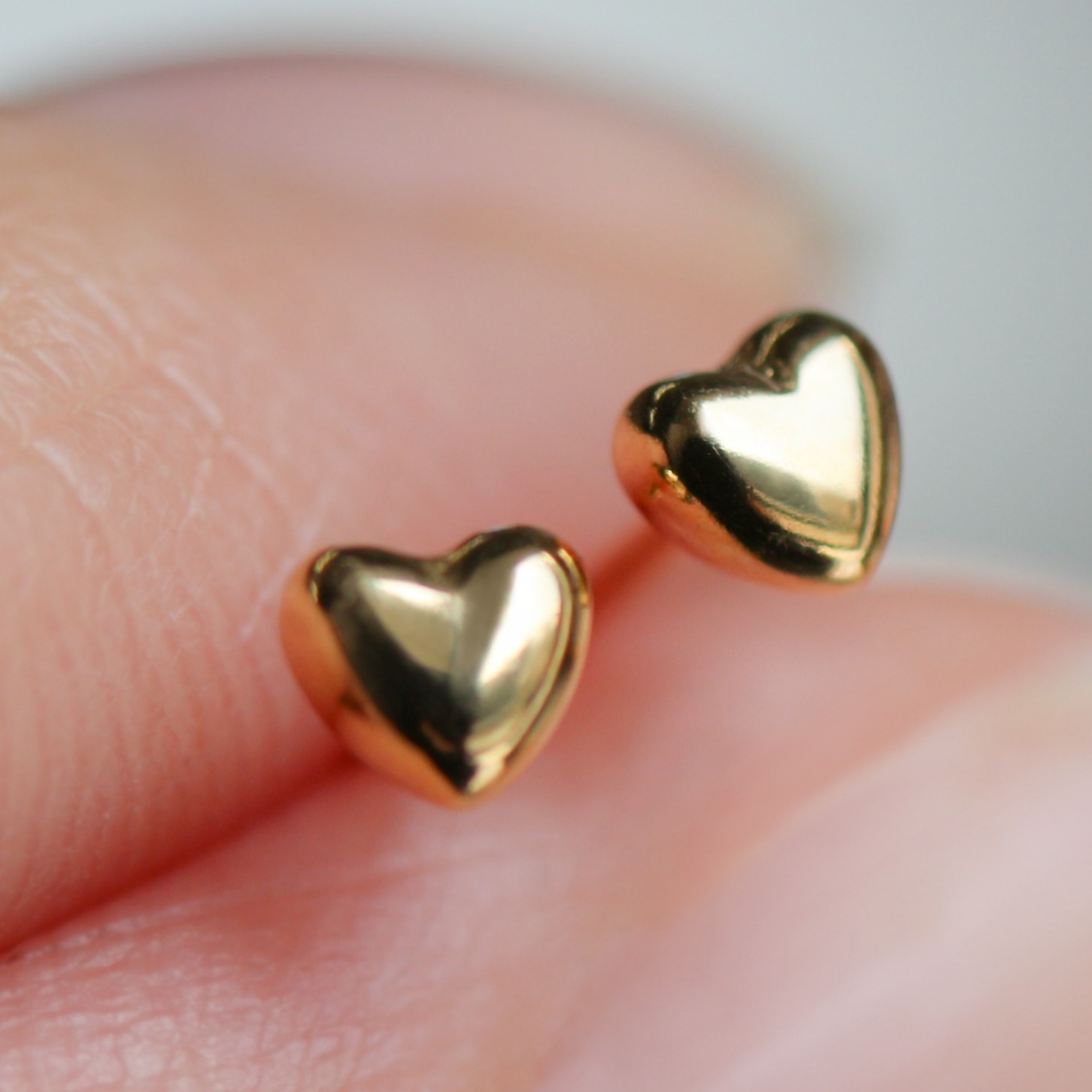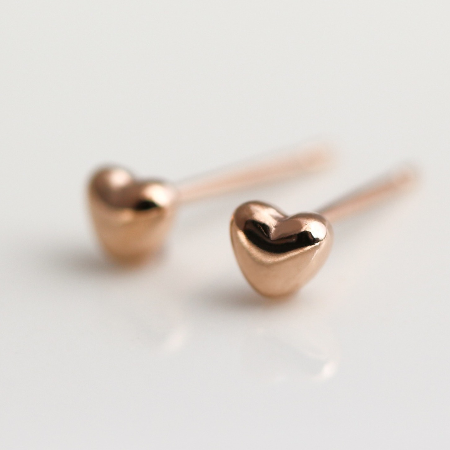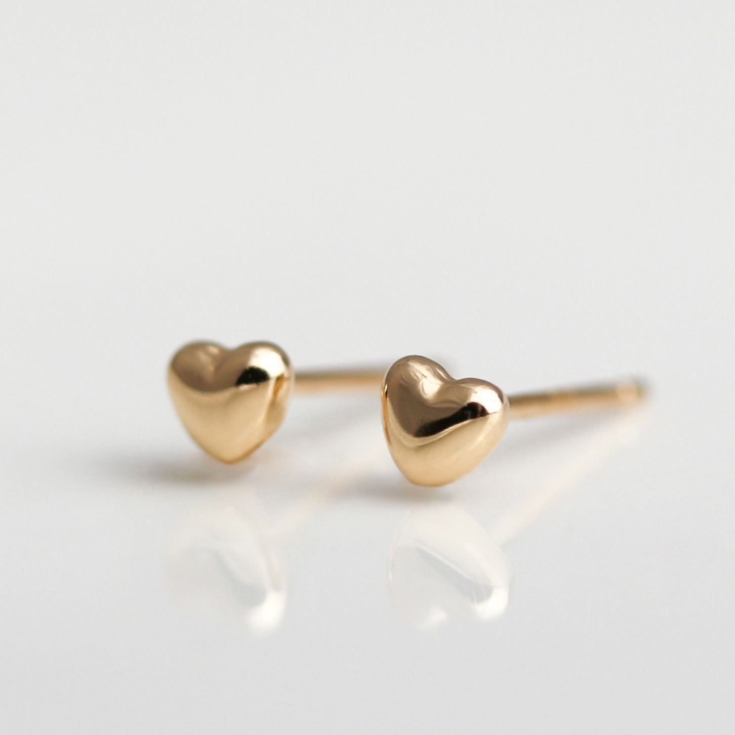 モチーフ、ポスト全て18金で作られた、お手頃なぷっくりハートのピアス。