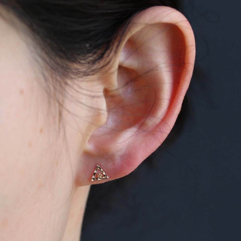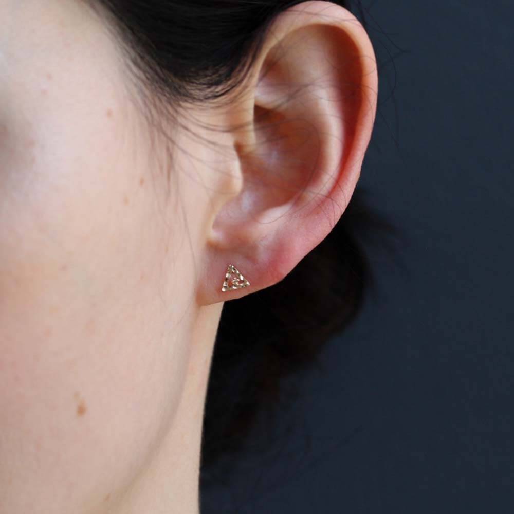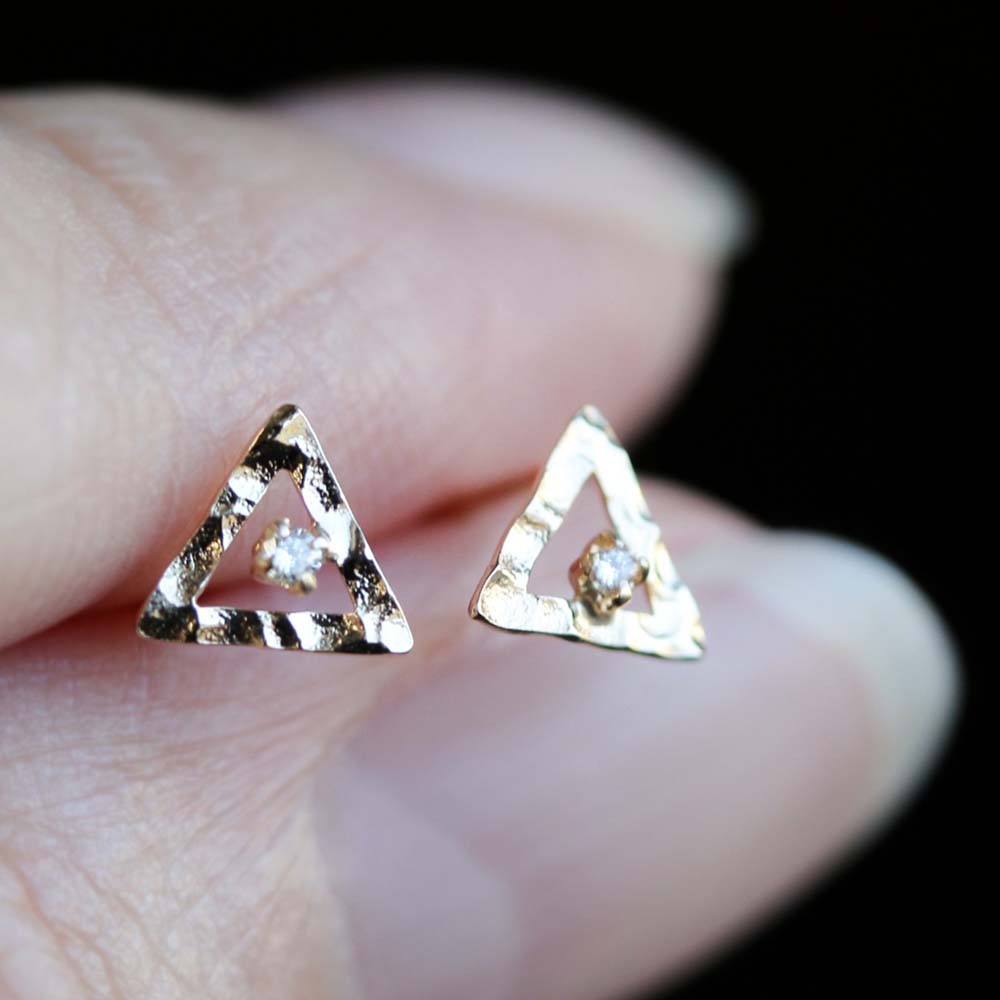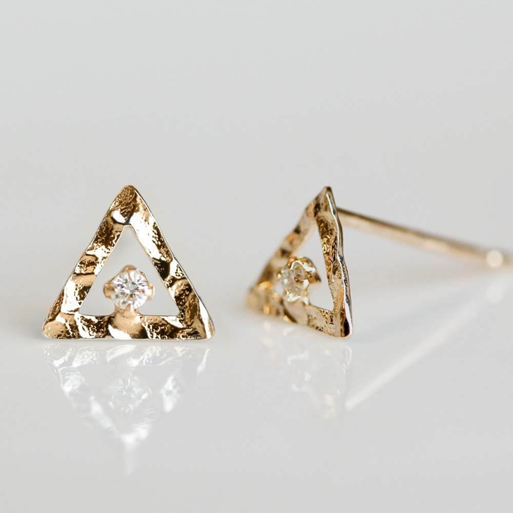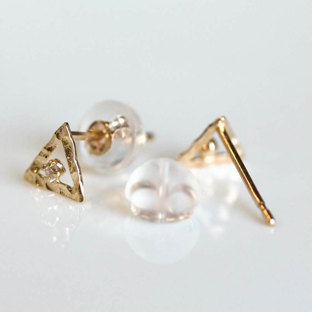 ダイヤモンドをあしらった小さなトライアングル ピアス。
