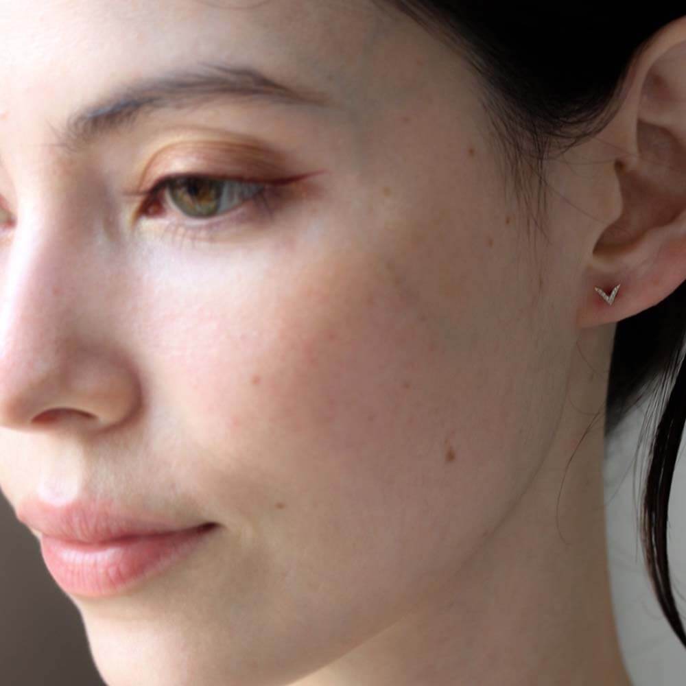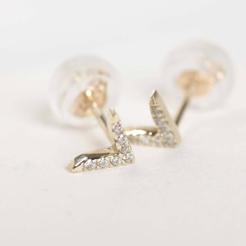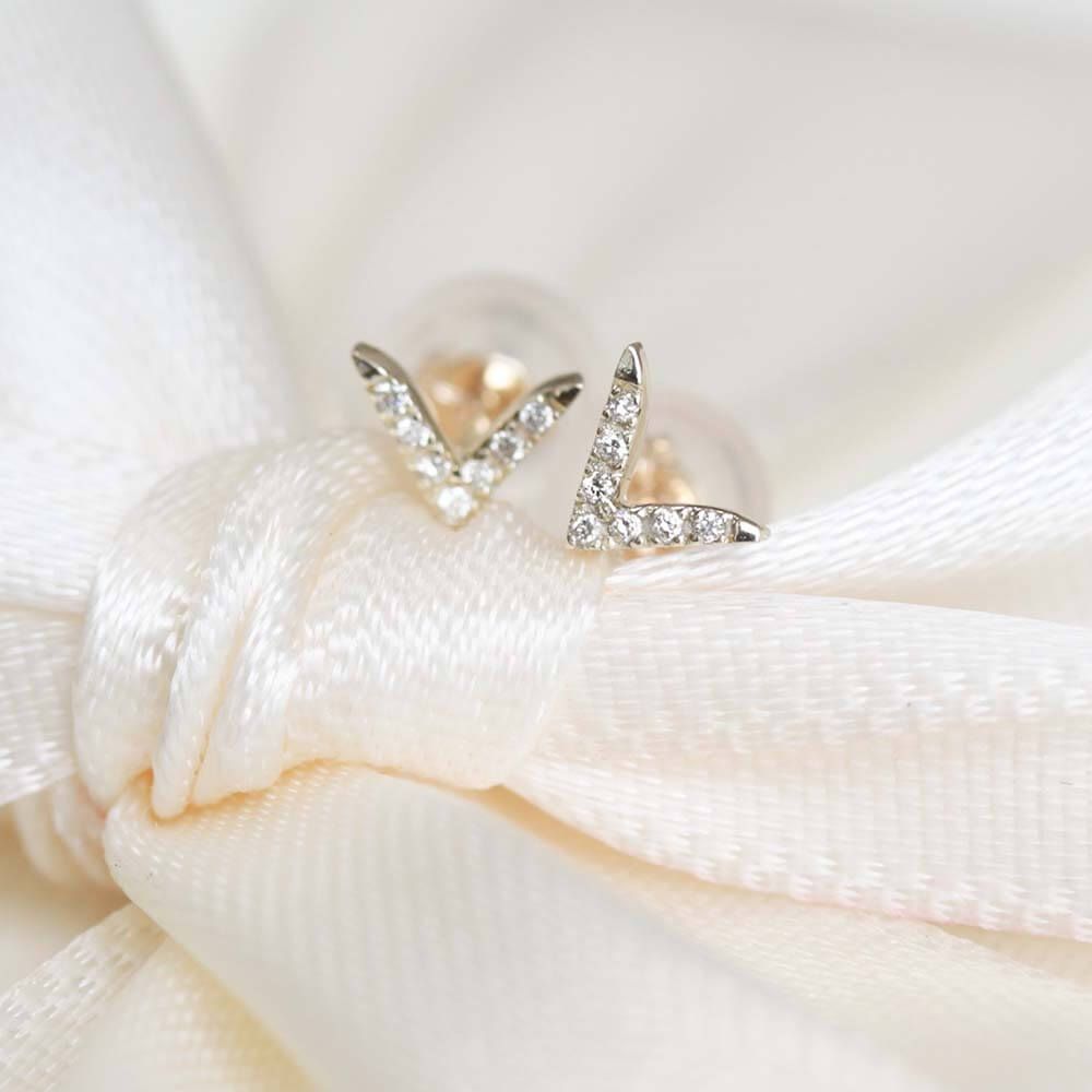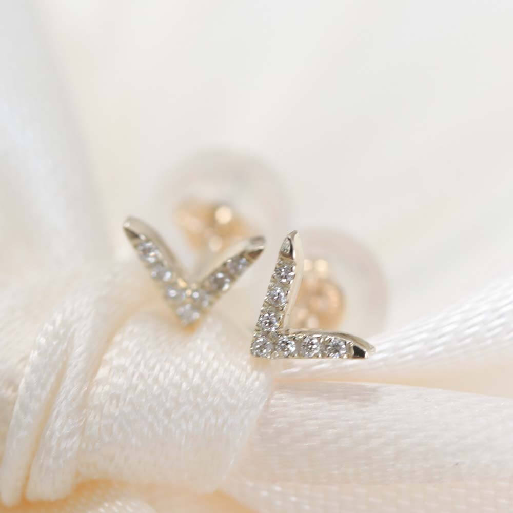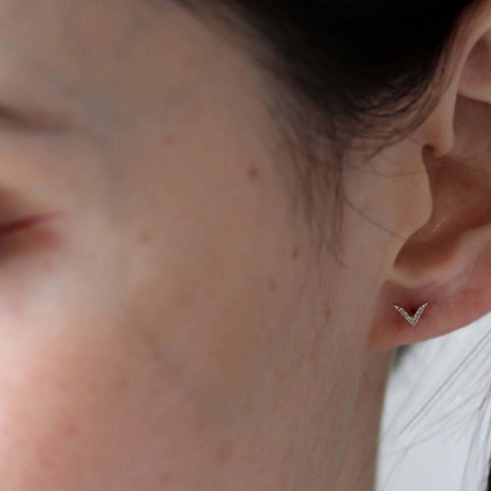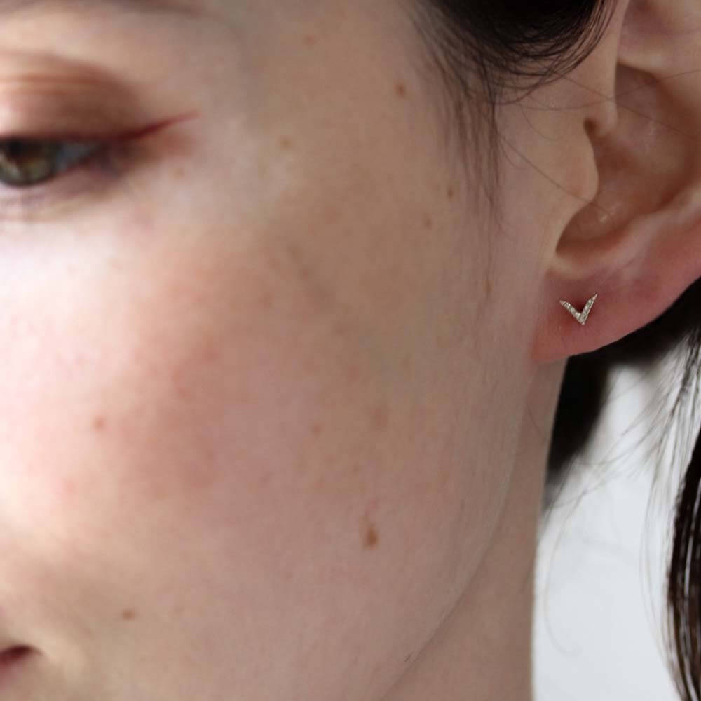 7石のダイヤモンドがV字に並んだダイヤモンドピアス。