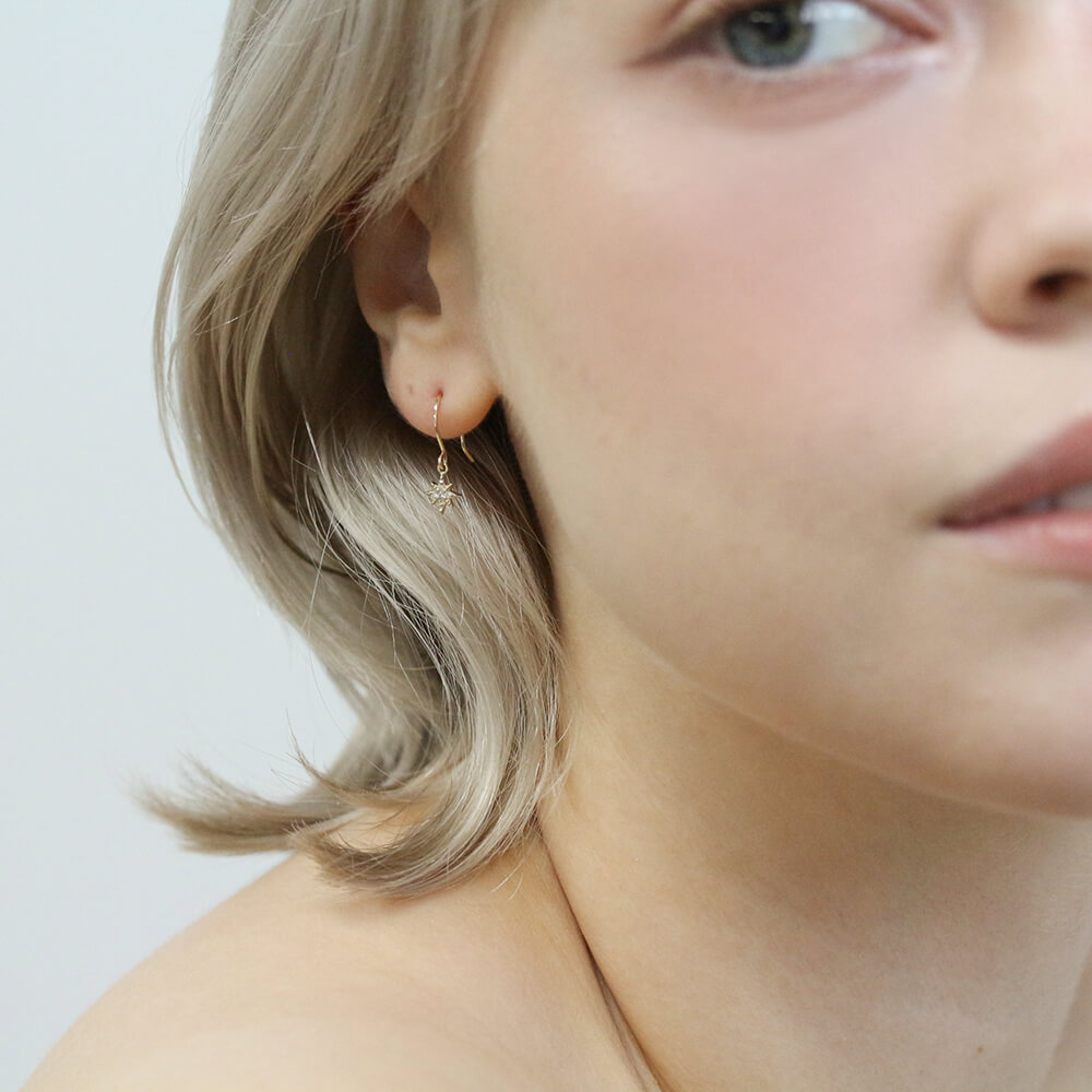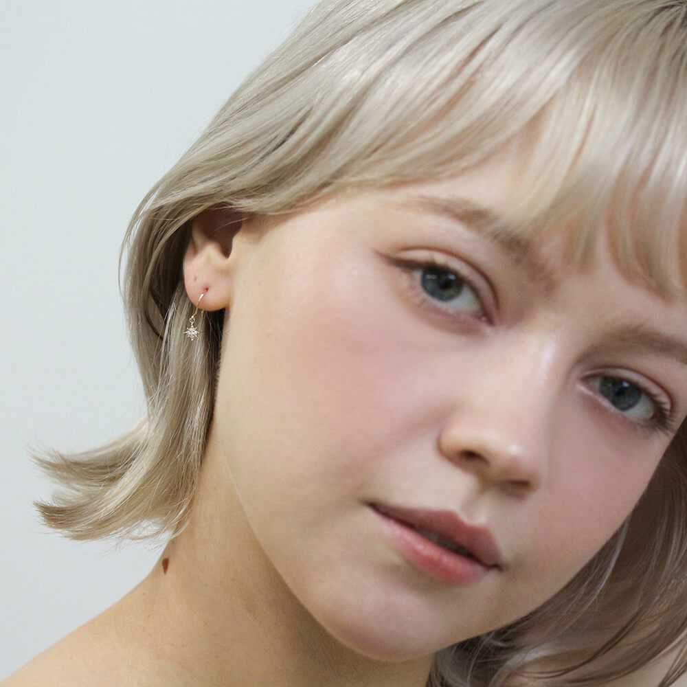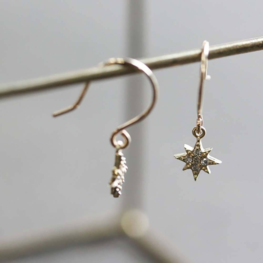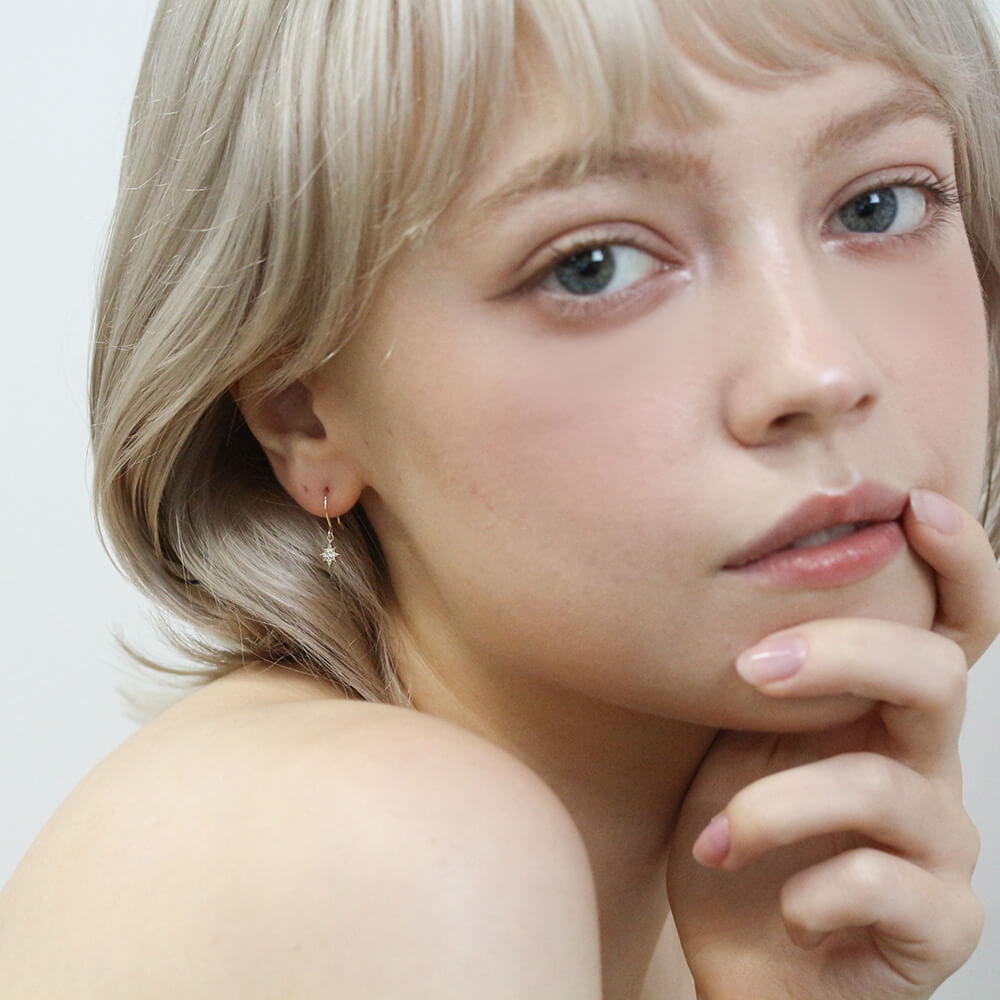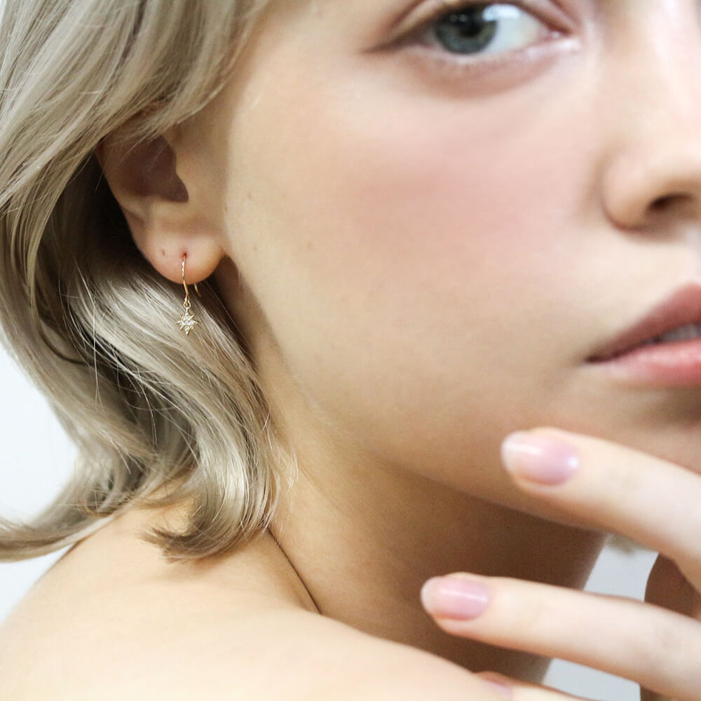 ダイヤモンドが星屑のように輝くスターダストフックピアス。