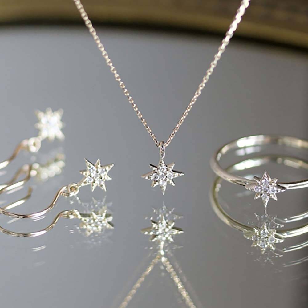 同じモチーフのネックレス、リングも合わせてギフトや自分へのご褒美におすすめです。