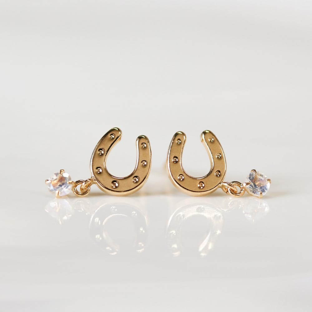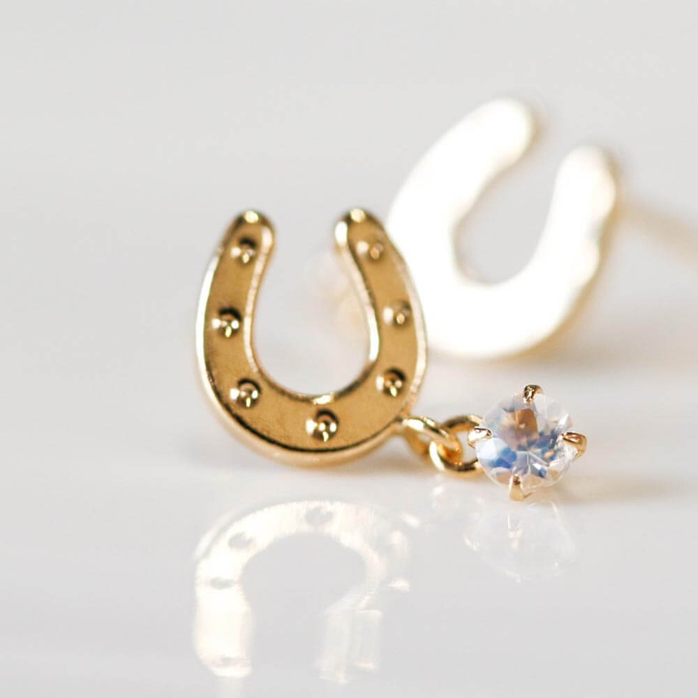 ロイヤルブルームーンストーン ホースシュー ピアス | K18〈誕生石〉