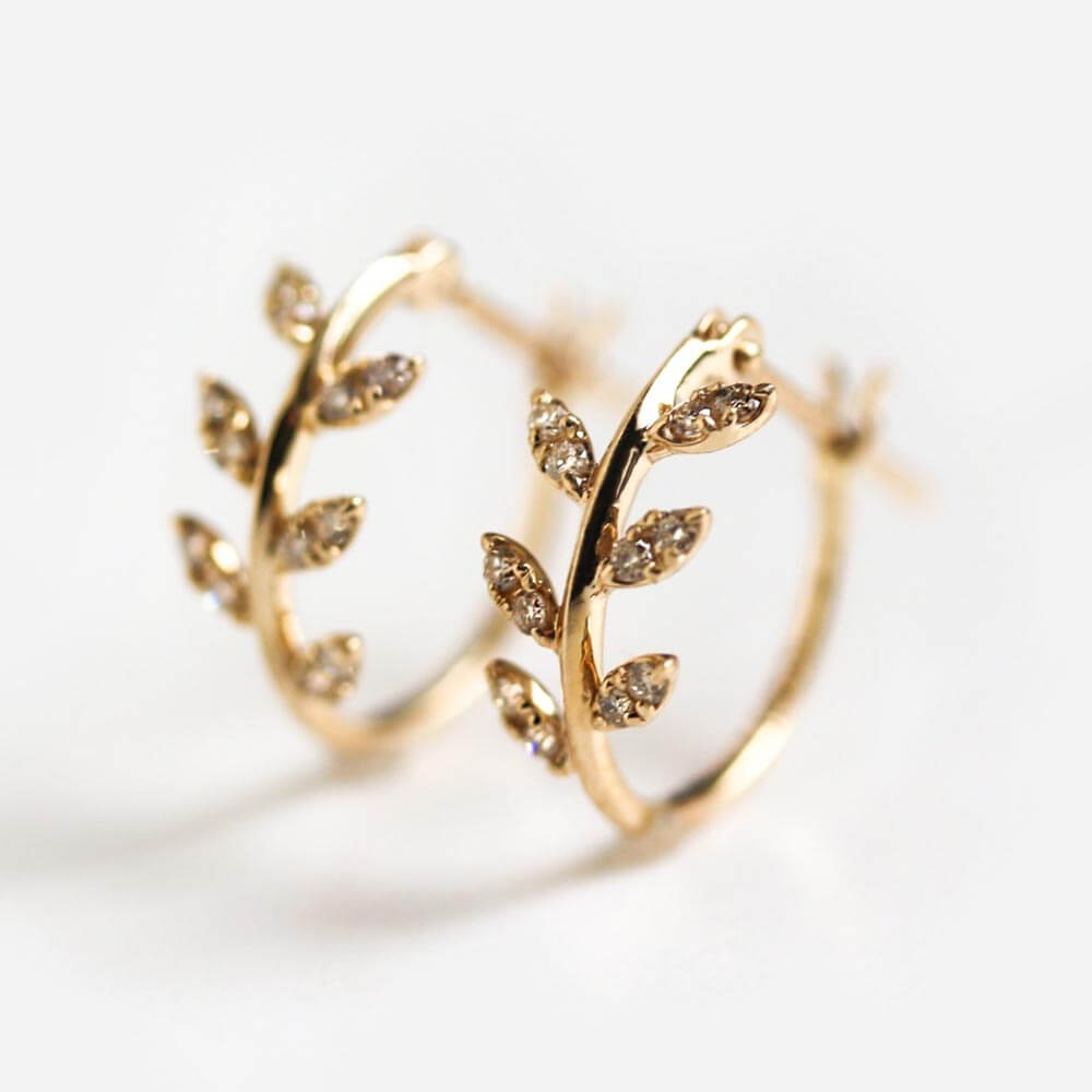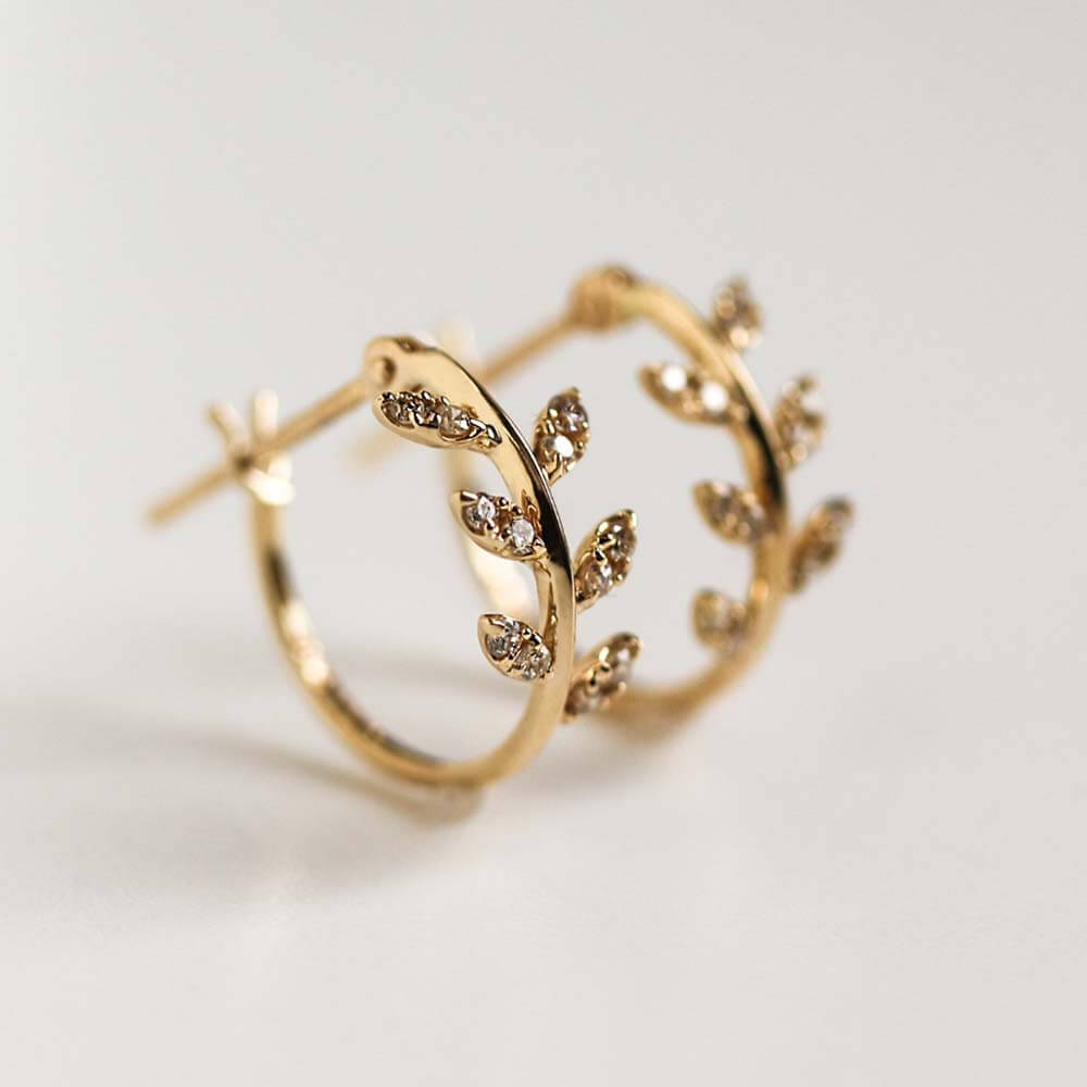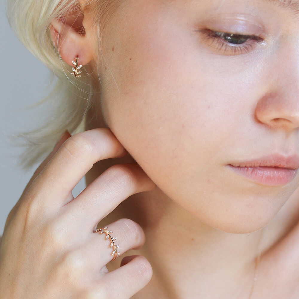 葉を象ったデザインに、上品な輝きのダイヤモンドが、