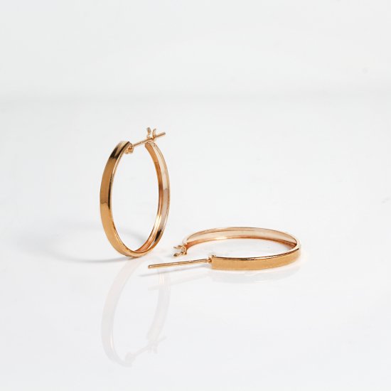 つるんとしたゴールド表面のテクスチャーで煌めく、大人女性らしいフープピアス。