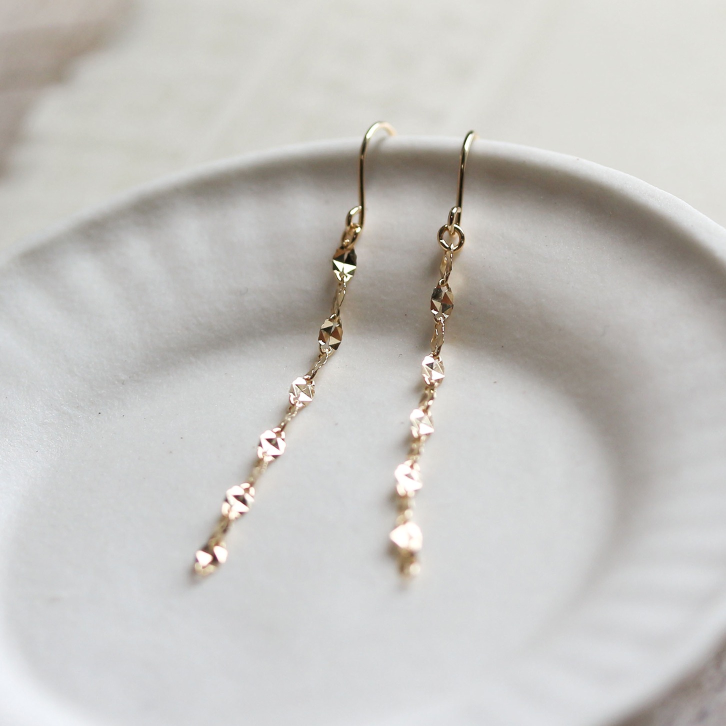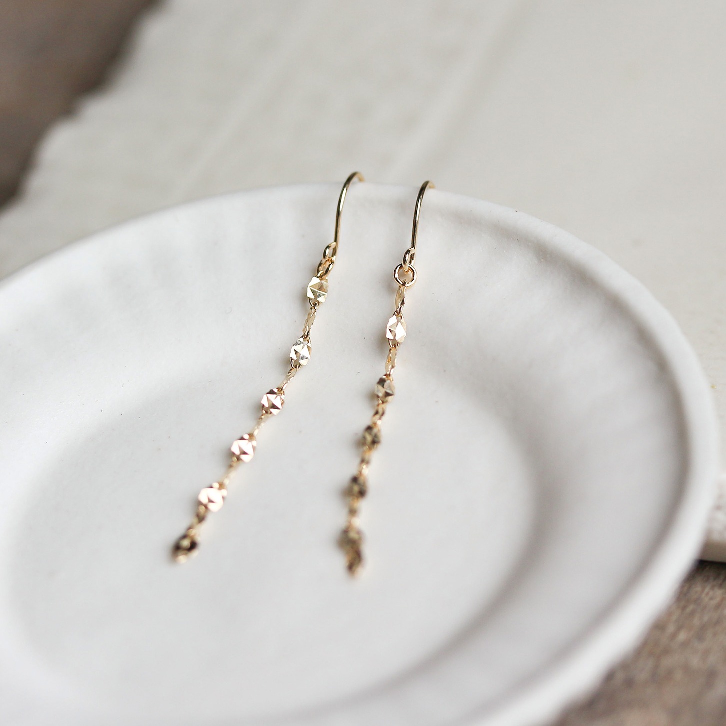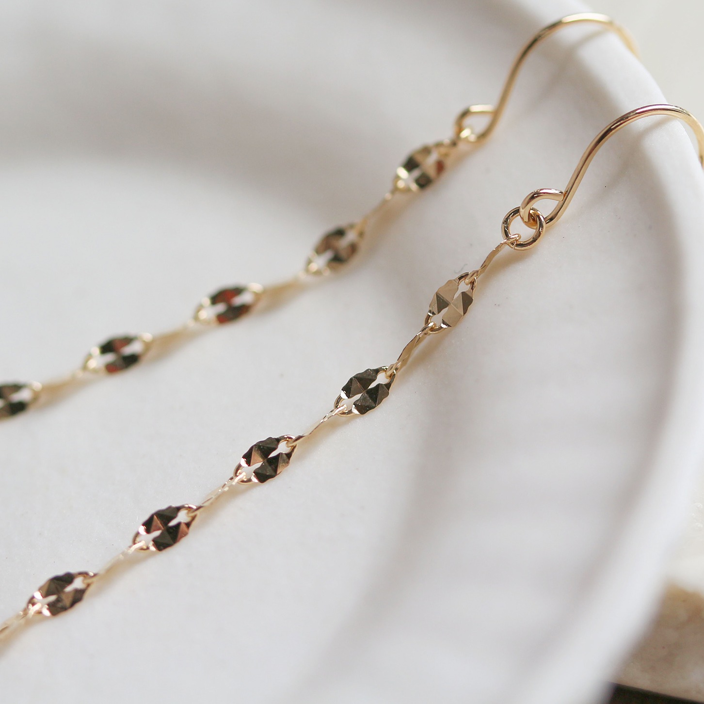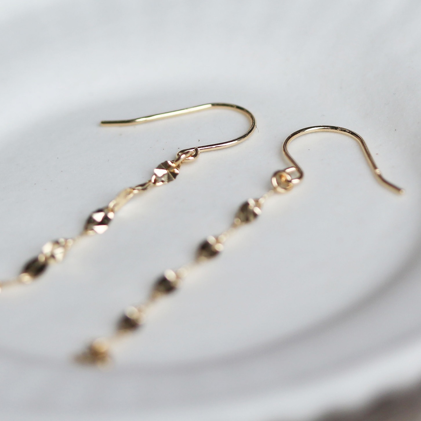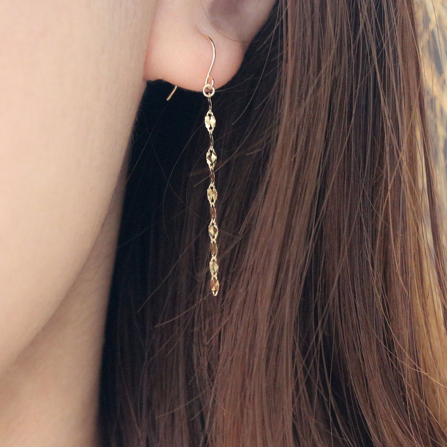 揺れるたびきらめくゴールドが顔まわりを華やかに仕上げてくれます。