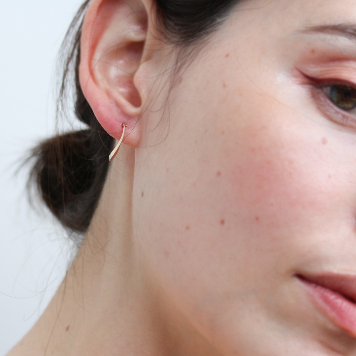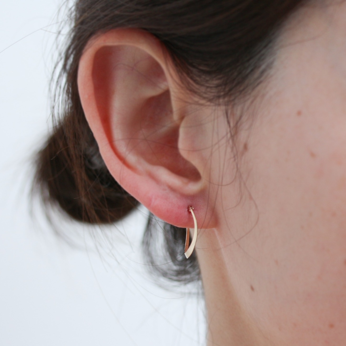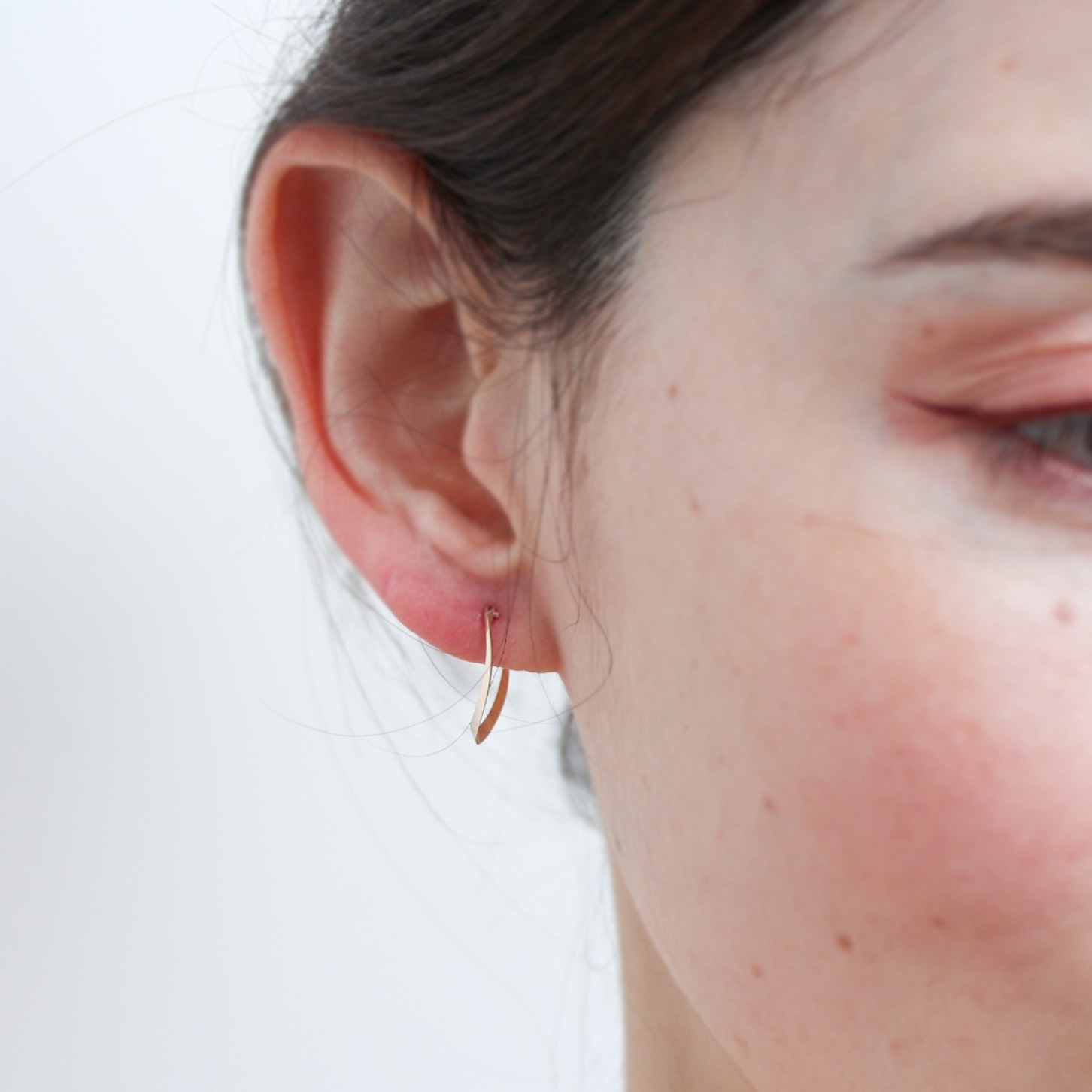 フラットなフープが軽さを見せ、耳元を軽やかな印象に。