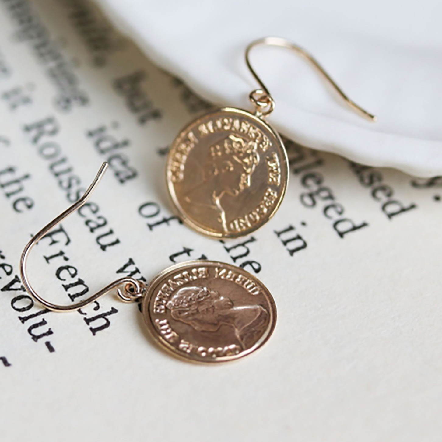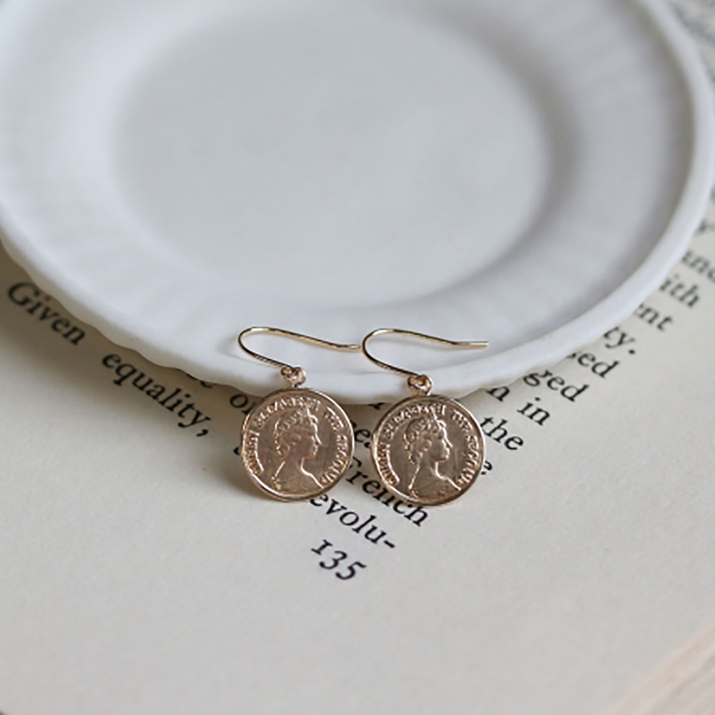 お守りのような存在のコインモチーフは、耳元でさりげなく揺れ落ち着いた輝きを見せてくれます。