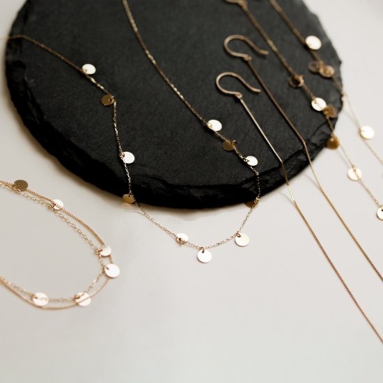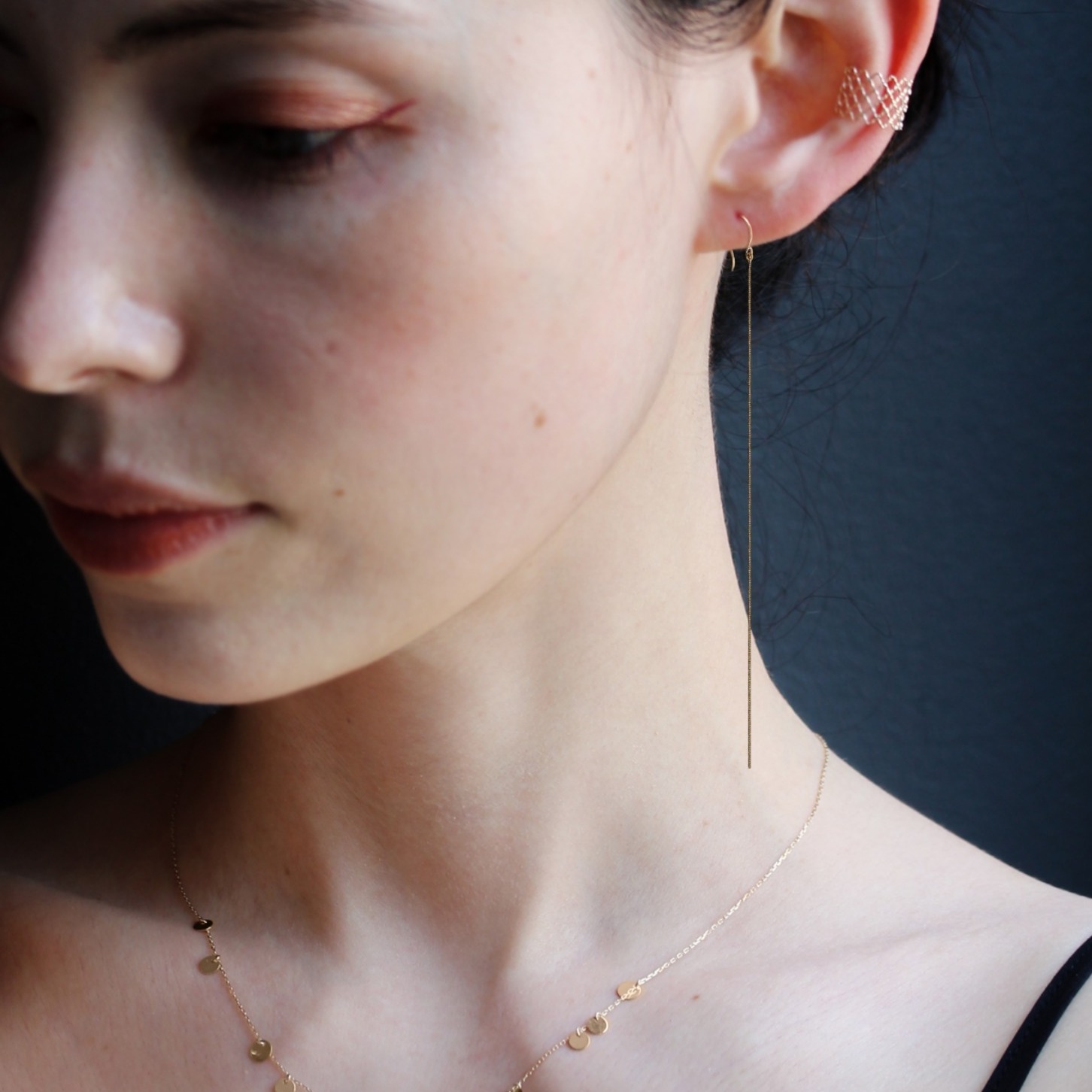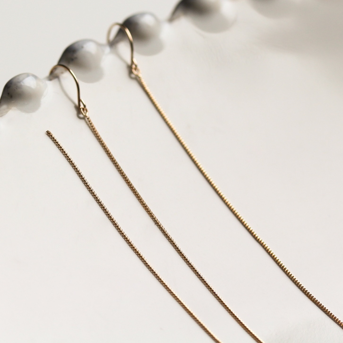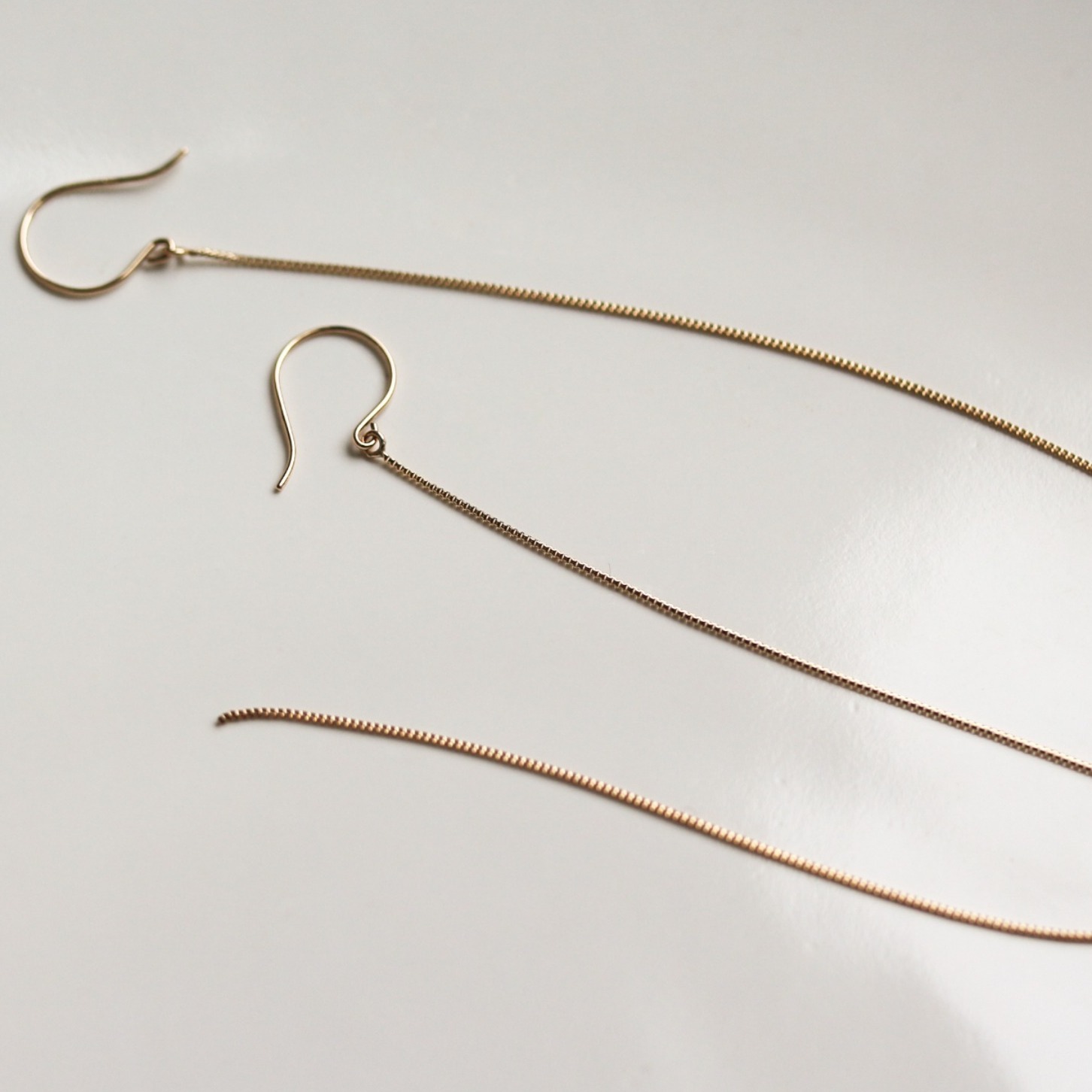 ベネチアンチェーンを使用したシンプルデザインのフックピアス。