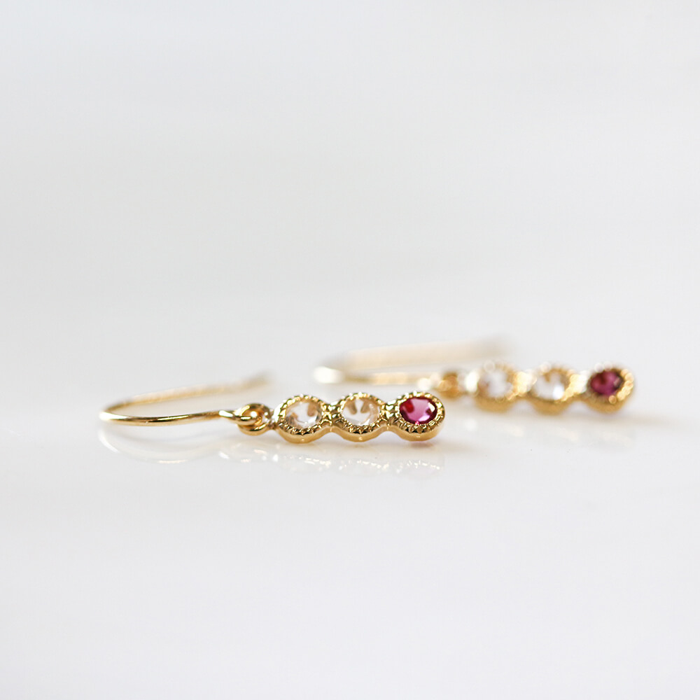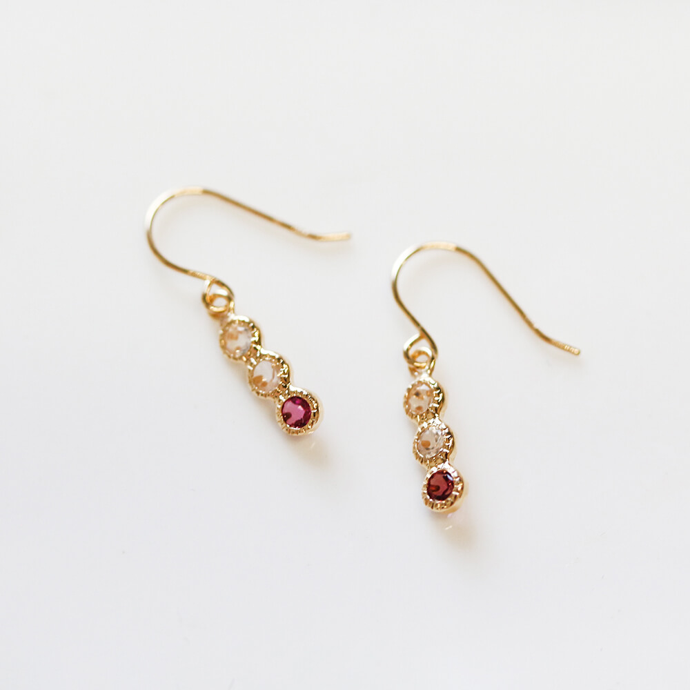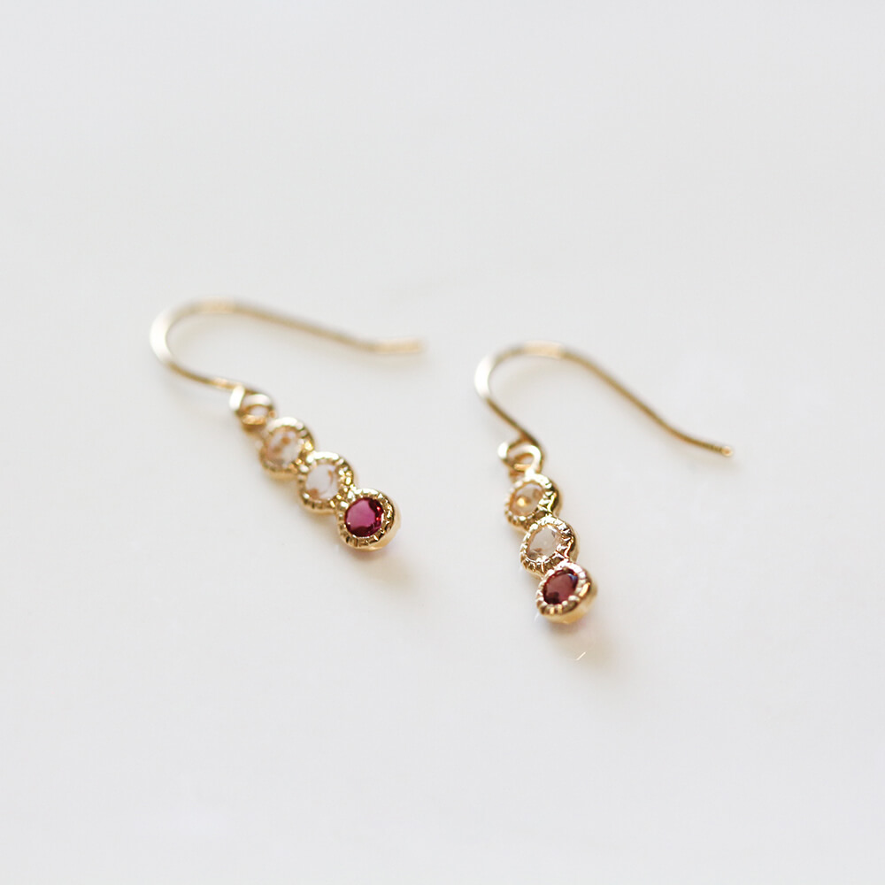 ピンク系の天然石をカラーグラデーションで配置したフックピアス。