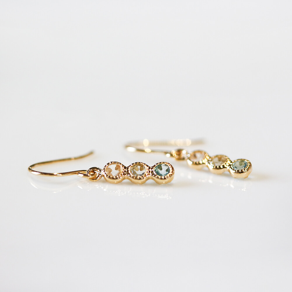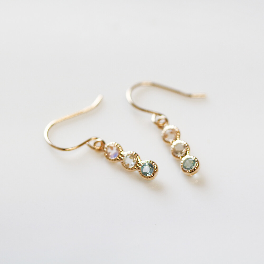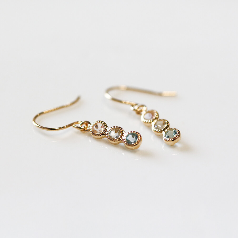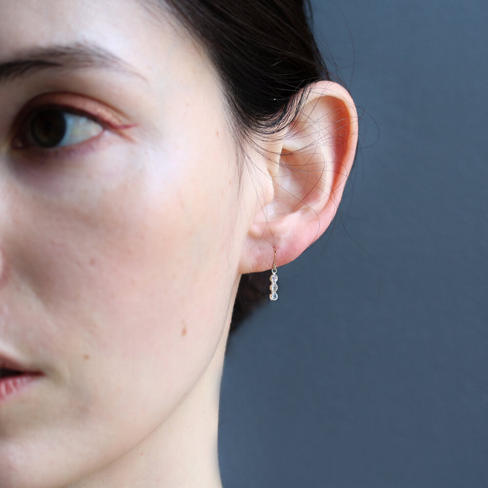 人気のブルーカラー3石をグラデーションにしたフックピアス。