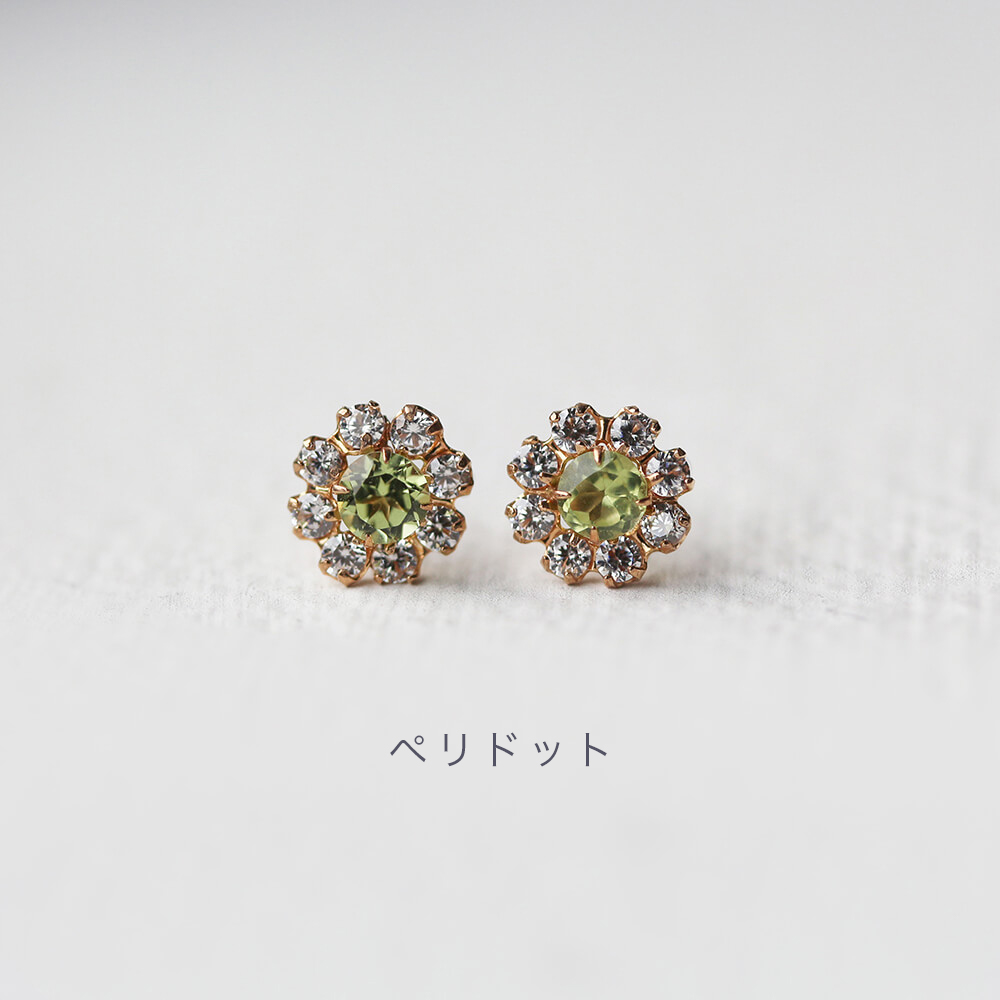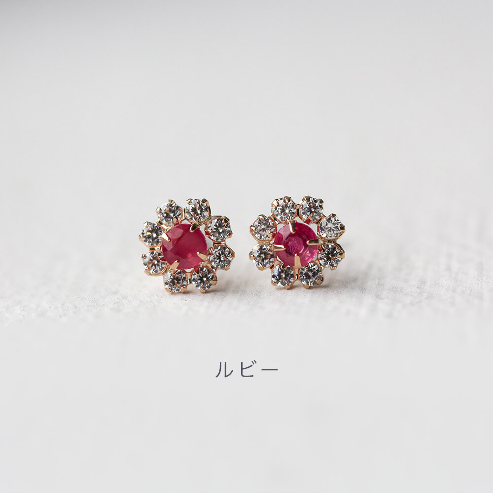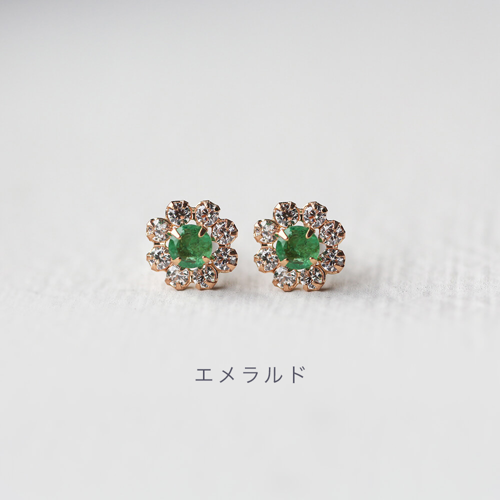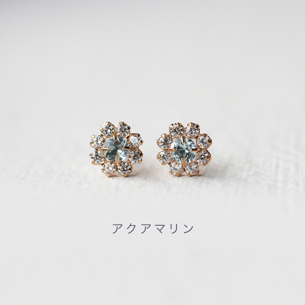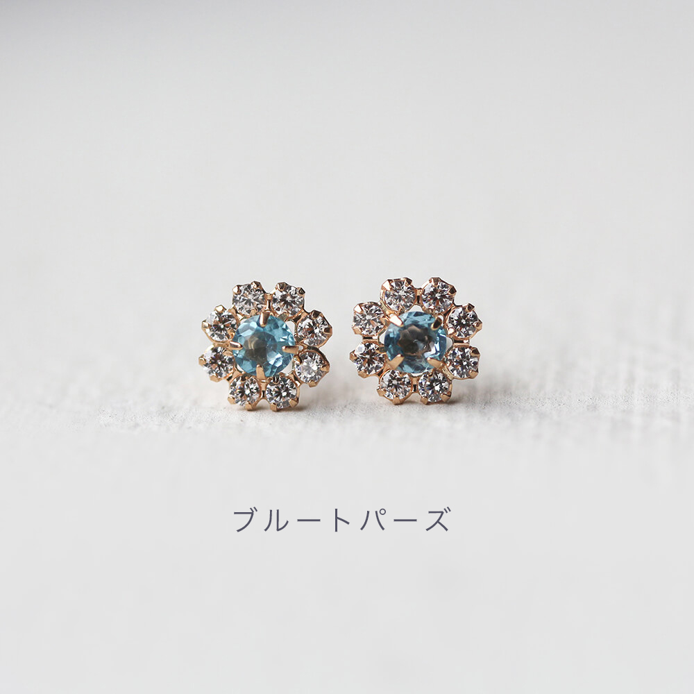 カラーストーン フラワー ピアス | K10YG 〈誕生石〉