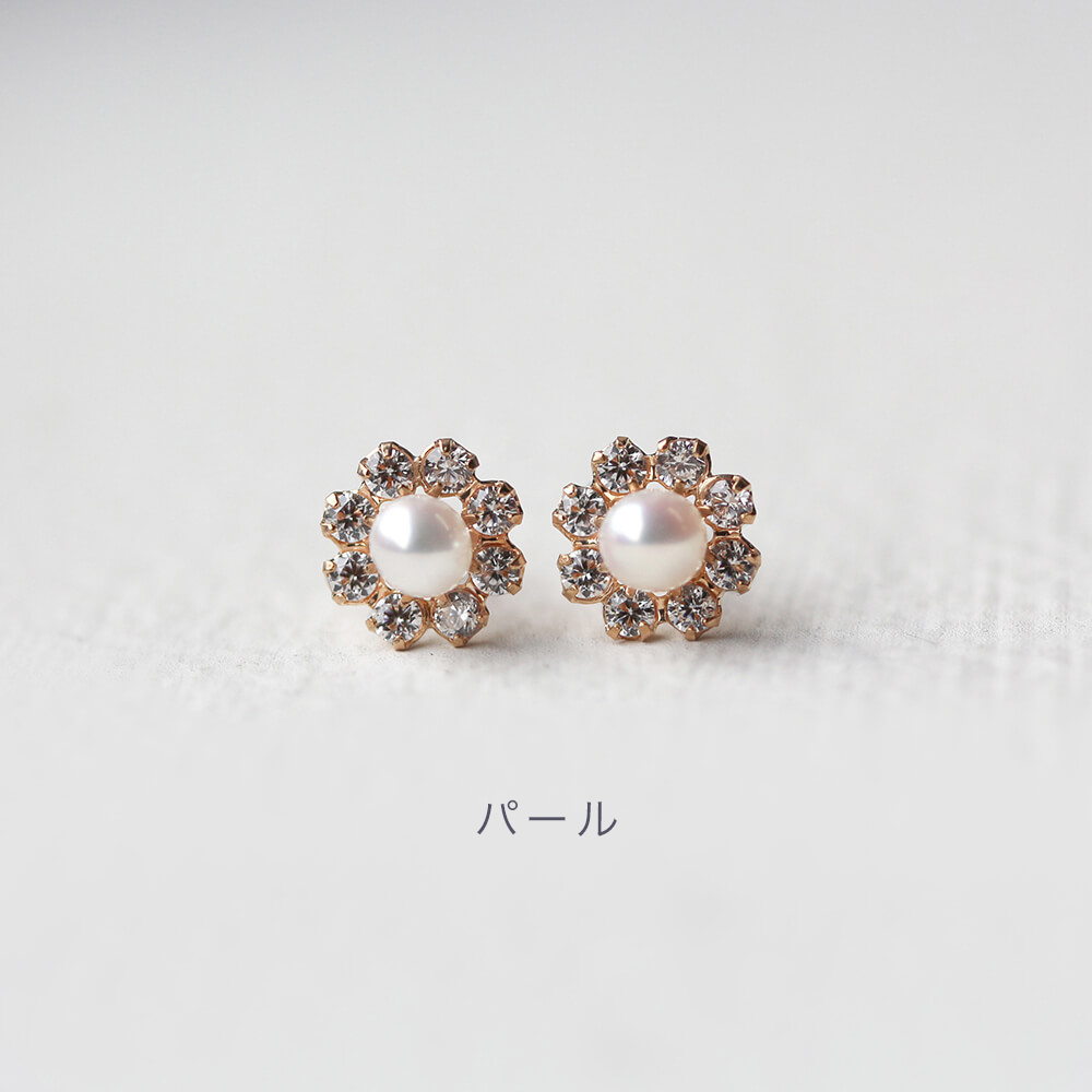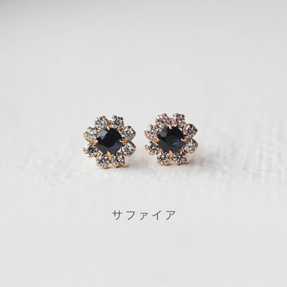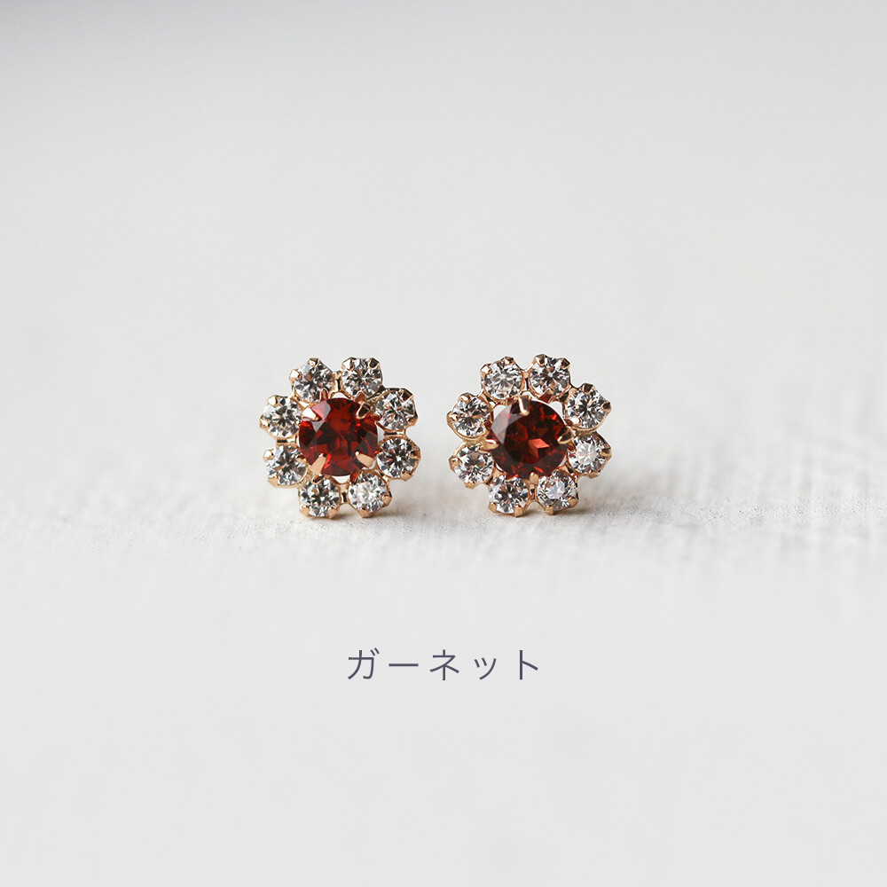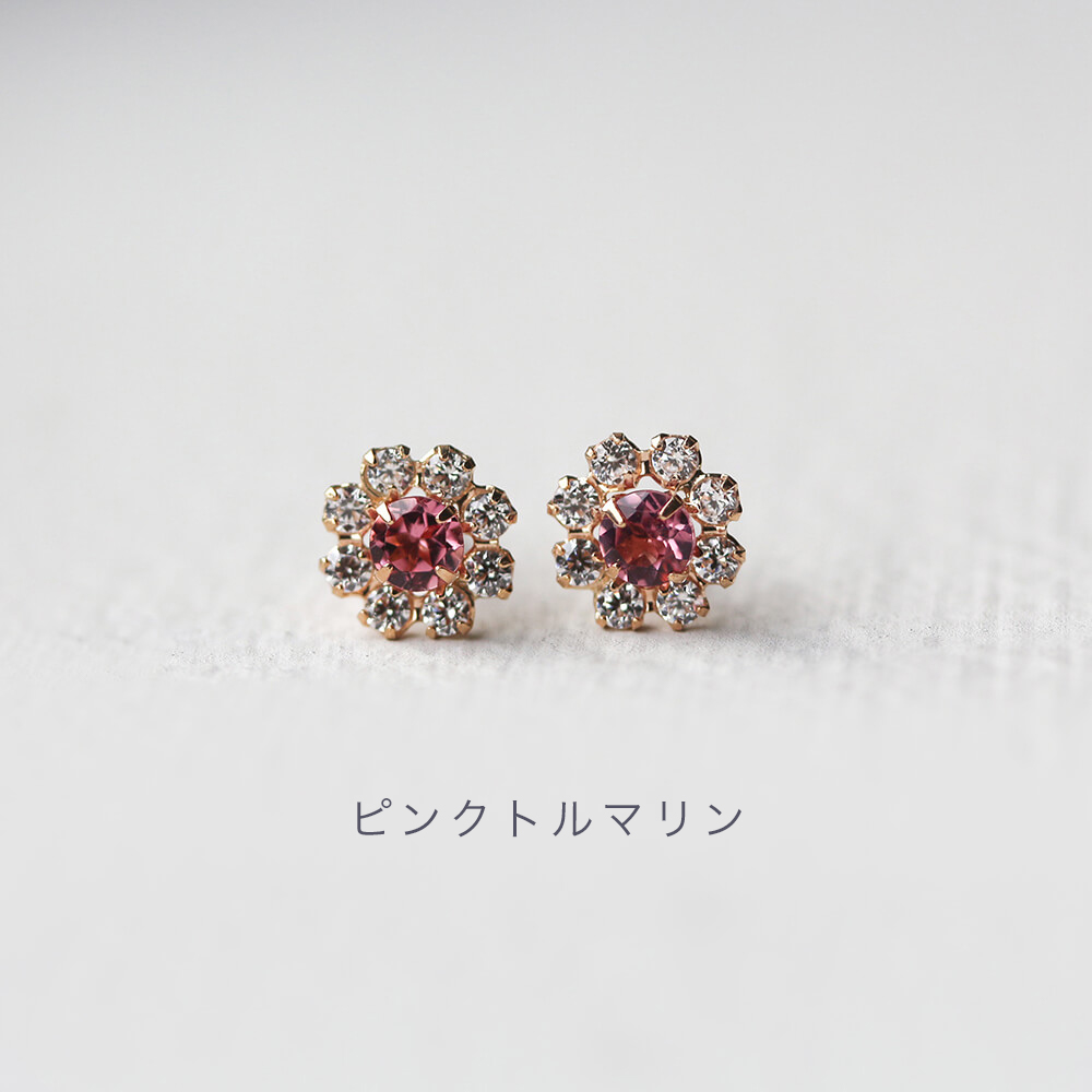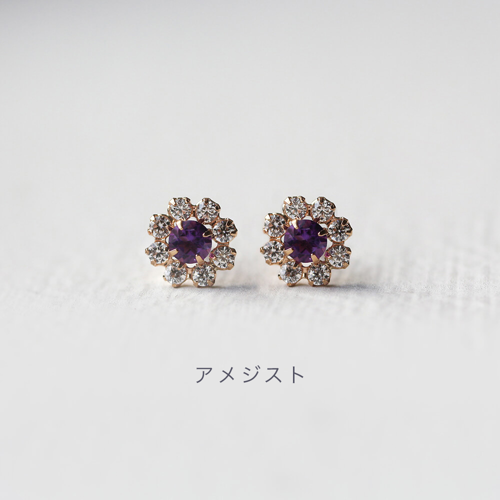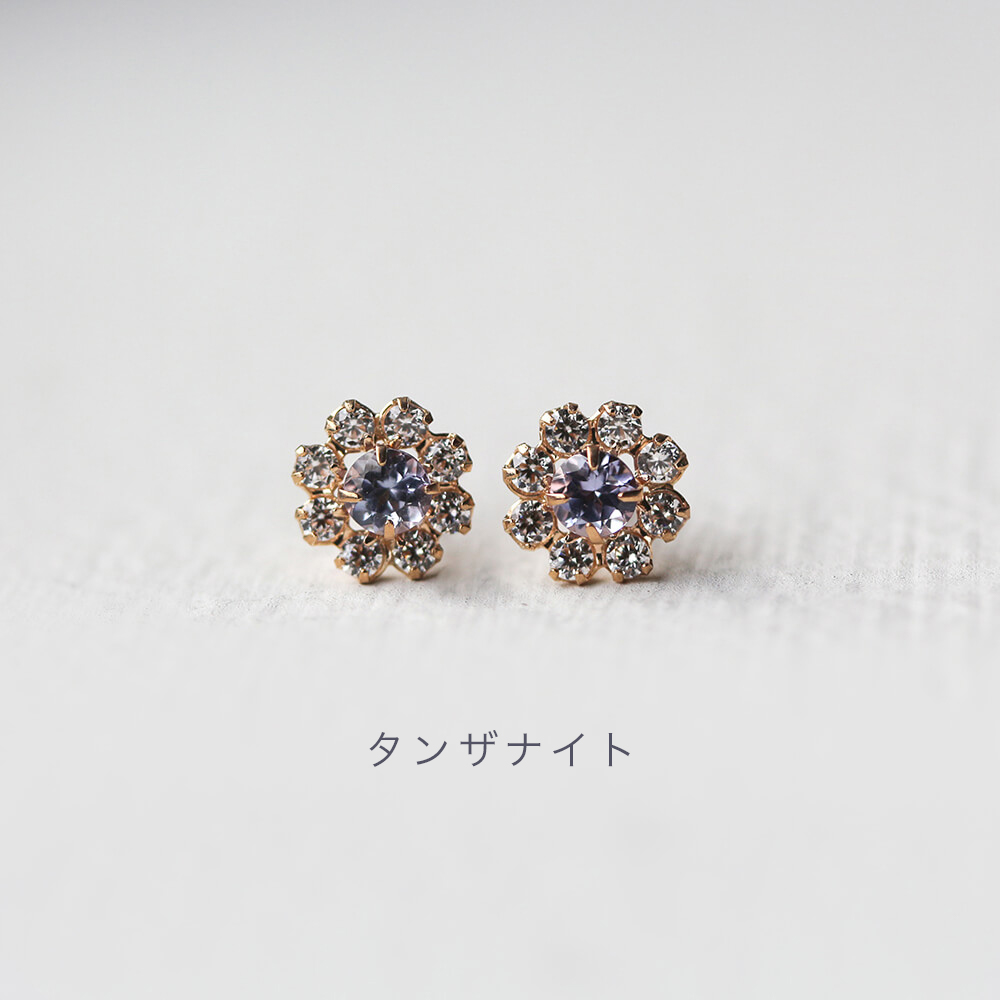 カラーストーン フラワー ピアス | K10YG 〈誕生石〉